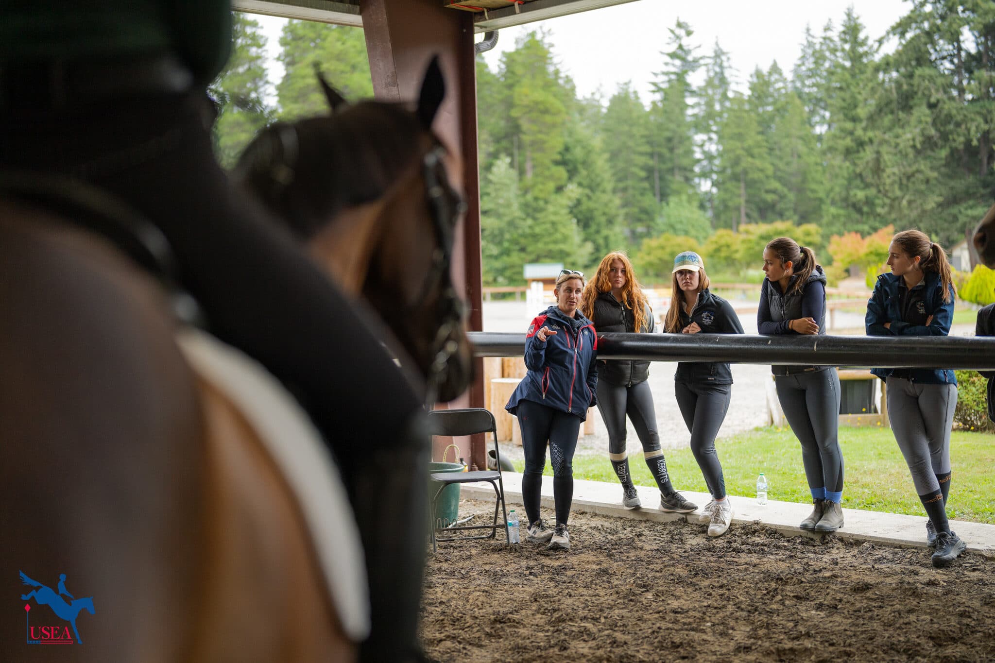 Yelm, Washington—Aug. 13— Catching riding was the theme of the first day of action at the 2024 USEA Emerging Athlete U21 (EA21) West Coast II Regional Clinic on Tuesday at Aspen Farms, a 240-acre facility in Yelm, Washington, about 60 miles south of Seattle.