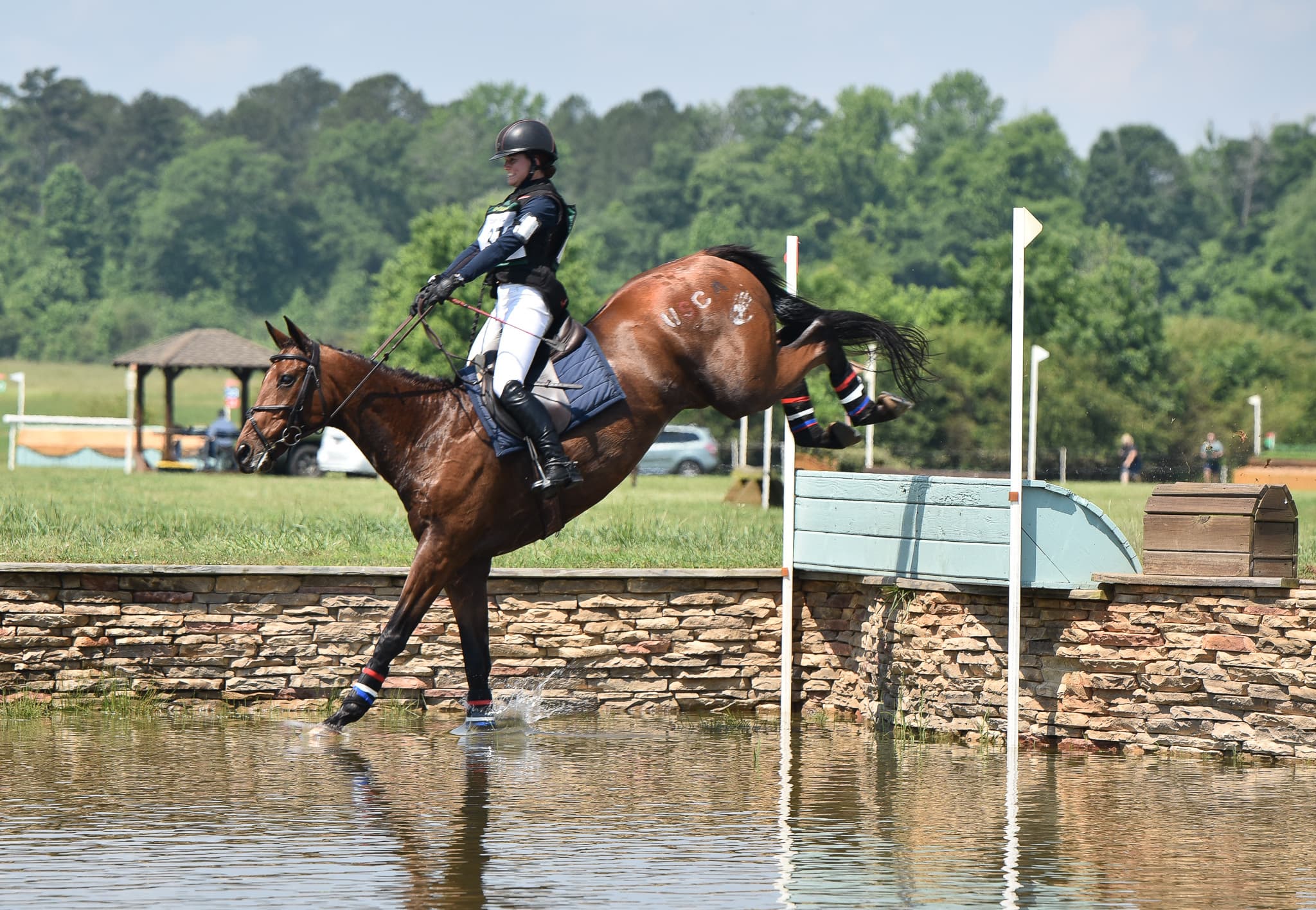 Sitting in second place heading into tomorrow is the University of Kentucky’s Wildcats team consisting of riders in the Preliminary and Training levels, who all completed dressage and cross-country today. The UK Wildcats team consists of Jackie LeMastus and Exmoor Denver (Preliminary), Katelyn Hagerty and Dutch Harbor (Training), Clair Rowlands and Category 5 (Preliminary) and Cora Severs and Cuervo (Training). The team will tackle Chris Barnard’s show jumping courses tomorrow while sitting on a cumulative score of 93.835.