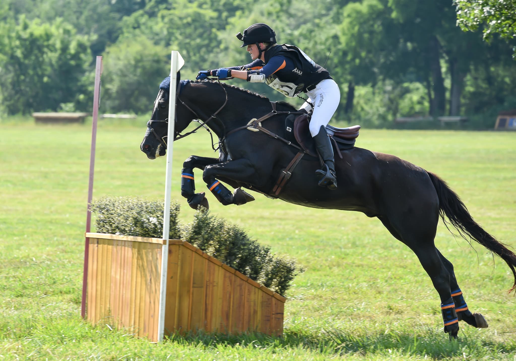 Auburn University Orange team leads after the first day of competition on a cumulative score of a 92.601 with their Novice and Training level competitors. The team consists of Isabel Franklin and Anchorman (Novice), Sallie Johnson and Things to Ponder (Training), Dorothy Dreelin and Subtle Dream Unveiled (Novice) and Aubrey Wagner and Fernhill Sinatra (Training). The Novice level riders completed dressage and show jumping today, while the Training level riders completed dressage and cross-country.