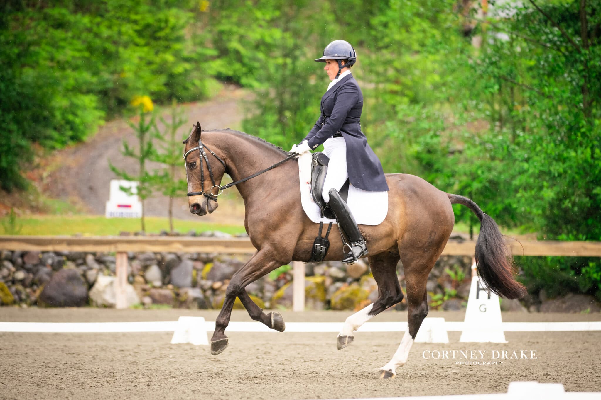 “He was really good,” said Nielson. “We’ve been working hard. He’s a new horse to me. We had a really steady test in the 2*-Long at Twin Rivers in April, so we tried to add a little more pizazz to it today and the judges liked it.” She is excited by the 7-year-old Mecklenburg gelding’s prospects this weekend. “I’d like to thank his owners, Black Diamond Partners, Becky, and Jim–it wouldn’t be possible without them!”