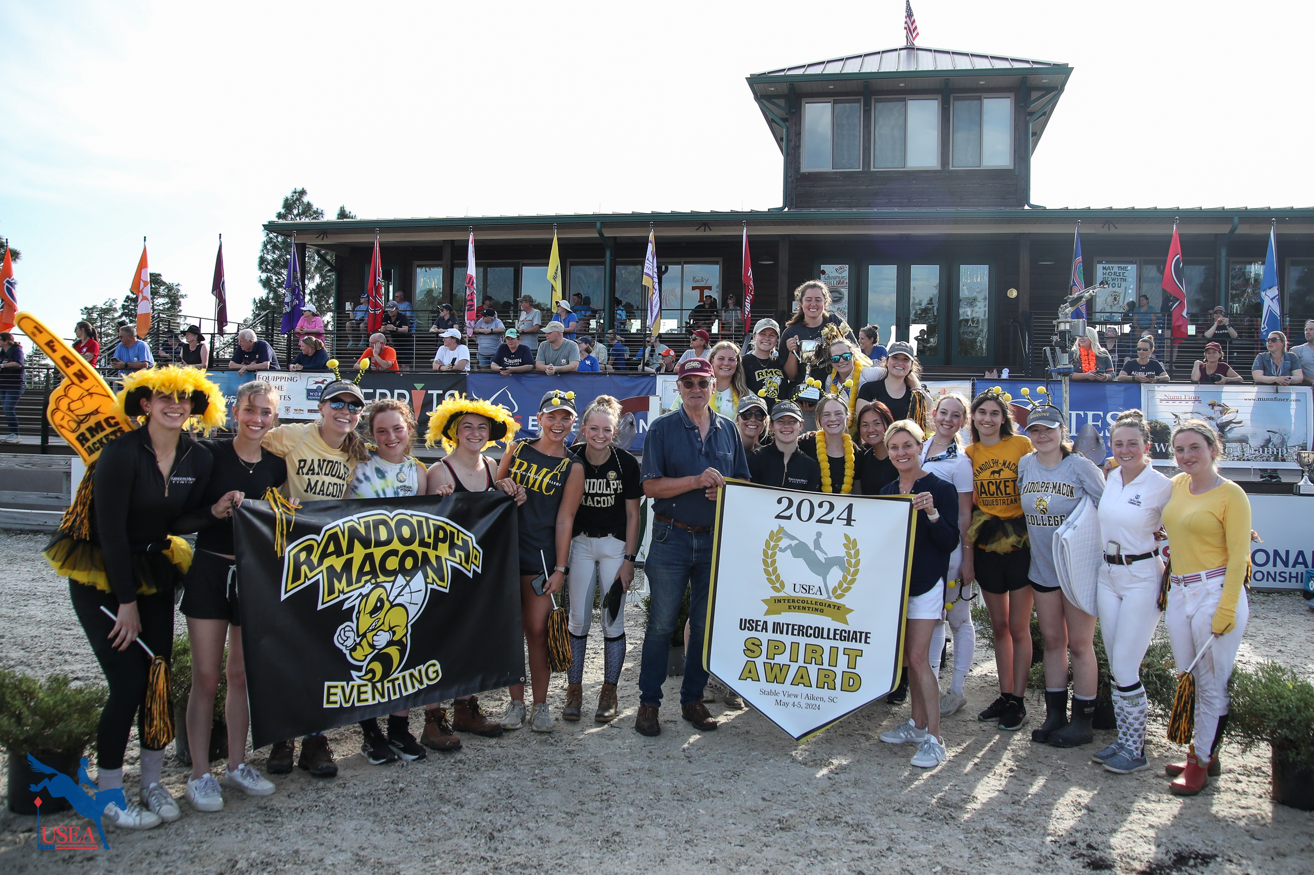Randolph Macon College received the 2024 Intercollegiate Spirit Award based on a culmination of team spirit, stall decor, and results from the hobby horse, mechanical bull, and window decorating competitions.