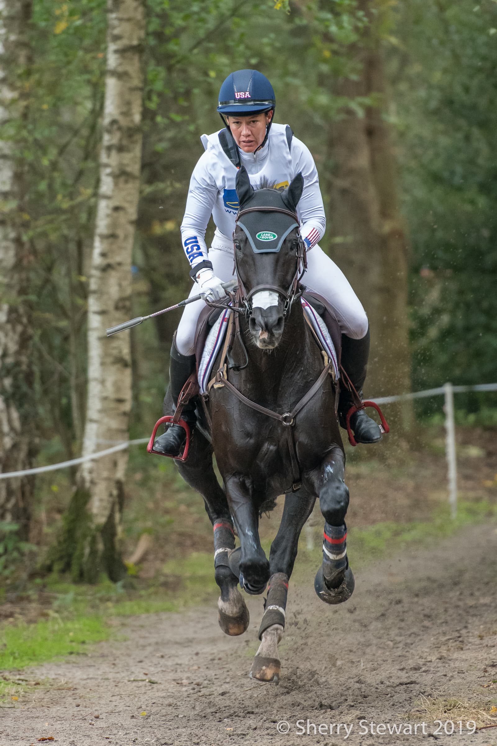 Tamra Smith and Eric Markell and Ellen and Alex Ahearn's 13-year-old German Sport Horse gelding Mai Baum (Loredano x Ramira) were the best of the Americans today, picking up just 0.8 time penalties on cross-country to move up into seventh place on a score of 27.5.