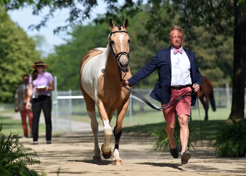 An early morning sprinkle gave way to a nice rainbow and then to brilliant sunshine as the Adequan USEA Gold Cup CIC3* horses gathered for the final jog and inspection this morning at the Richland Park Horse Trials.