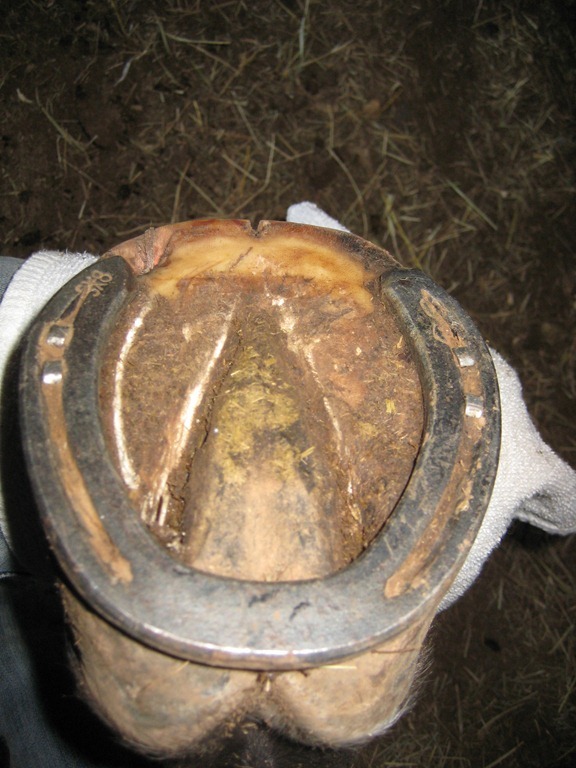 First injury and I am gutted. In his second shoeing, Roscoe got a close nail. At first, I wasn't overly worried. Nails happen. Pull the shoe, soak the foot, apply the tape, lather, rinse, repeat. Then he went three-legged lame. The abscess had probably sealed back up. However, no amount of reasoning helps when your horse looks at you pitifully and says his foot hurts too much to make it to the water trough. After second impromptu visit from the blacksmith, Roscoe is currently wearing his shoe backwards. This leaves the hole in the toe open yet provides support to his thin, Thoroughbred foot. As the supporting blacksmith explained, it has the added advantage of confusing anyone tracking us.