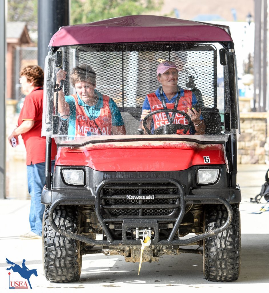Medical Services picks up an injured member of the media to take for x-rays. USEA/Leslie Mintz Photo.