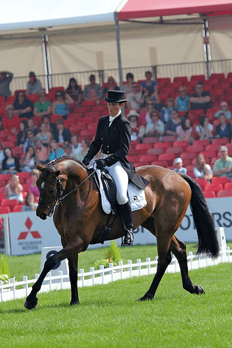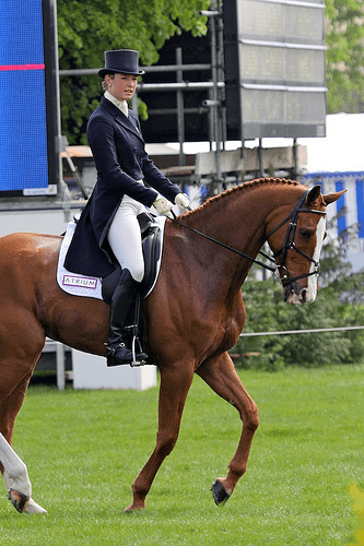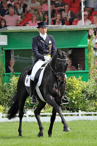 Thirty-eight riders have had their turn in the dressage arena at the 2011 Mitsubishi Motors Badminton CCI4*. Laura Collett and Rayef bested the field earning a score of 36.5 over three points ahead of second-placed Marina Kohncke and Calma Schelly. Susanna Bordone and Carrera round out the top three with a 43.3. Canadian Hawley Bennett-Awad, the only North American to compete today is lying in 12th with a 50.2. Katherine Erickson Photos.