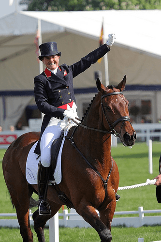 The remainder of the Badminton competitors took to the dressage arena today and a new leader emerged with Ruth Edge and Two Thyme scoring a 33.3. Piggy French is not far behind with Jakata while yesterday’s leader Laura Collett now sits in third. All three Americans and two Canadians rode their tests today with Selena O’hanlon and Colombo breaking into the top ten with a 43.3 and Karen O’Connor and Mandiba are the highest Americans lying in 15th.