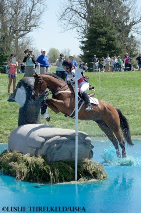 Derek di Grazia’s course encouraged a forward, aggressive ride and necessitated the riders to hold very precise lines without losing a positive momentum. While a variety of the 27 fences on course (many of which had multiple elements) caused problems, the Normandy Bank complex made trouble for five pairs, and the Water Park (5AB) and the Tobacco Stripping Bench (12AB) both caused four pairs to pick up jumping penalties. Overnight leaders Allison Springer and Arthur were one of the pairs that fell prey to the Normandy Bank complex, dropping them down to 26th place.