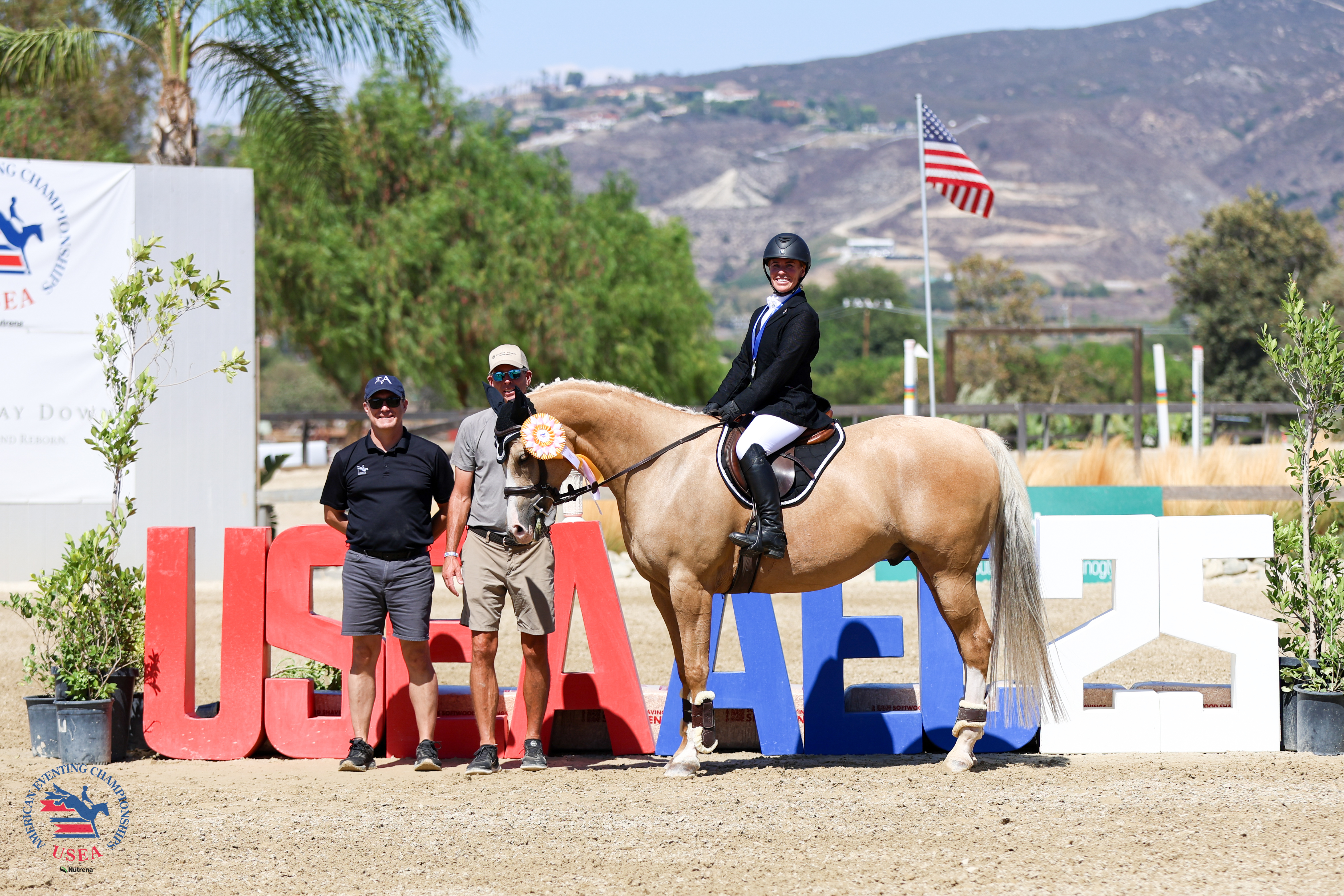 Temecula’s Katherine Robinson piloted Janya Orfeyeva’s 7-year-old Connemara mare, Stella Blue DFEN (R Blue Moon x MG Baby), to reserve champion honors after a fault-free weekend, finishing on their dressage score of 26.9.