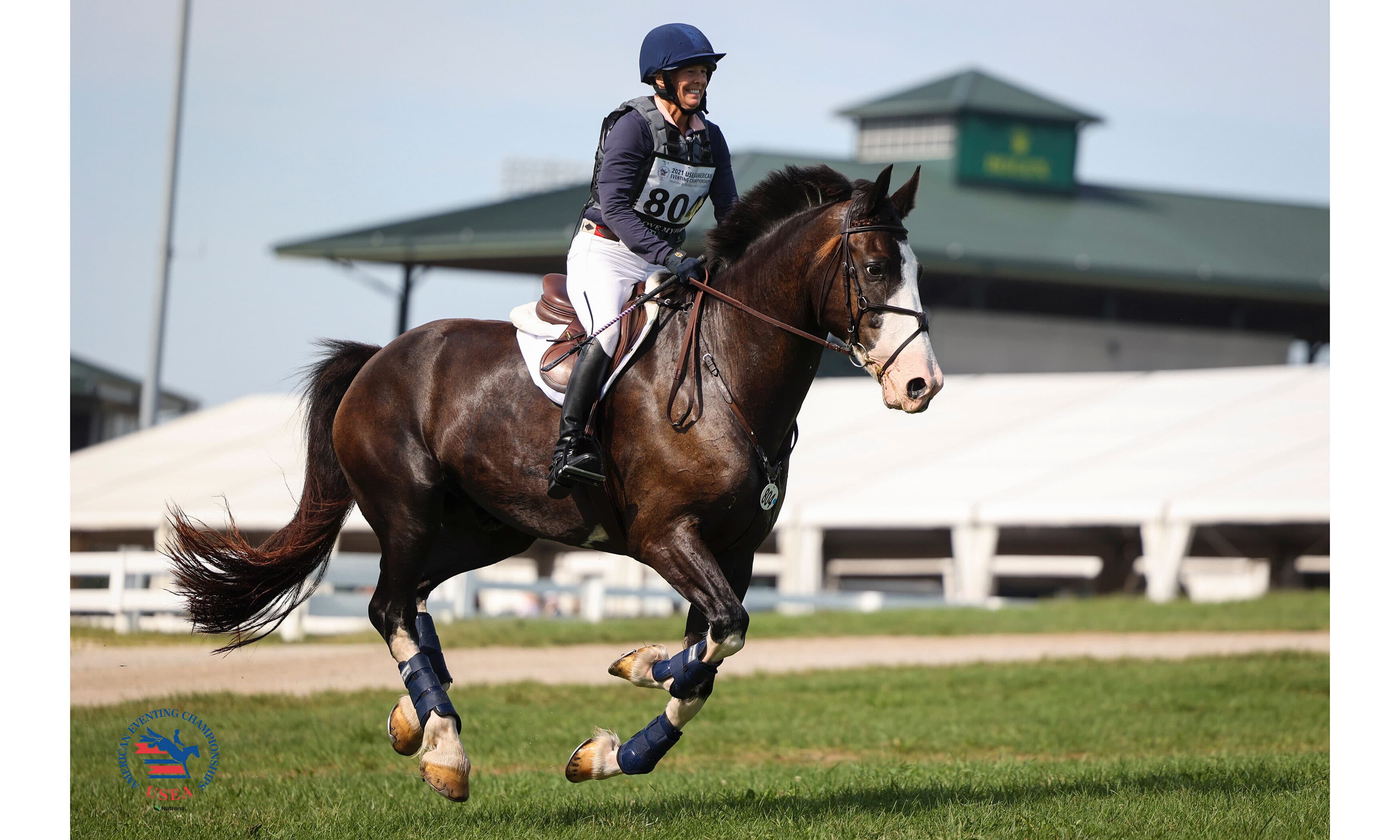 Overnight leader Susan Goodman knew the clock would be her biggest opponent on Saturday’s cross-country, but she and Cinna put the pedal down to keep their lead of the USEA Beginner Novice Rider Championship.