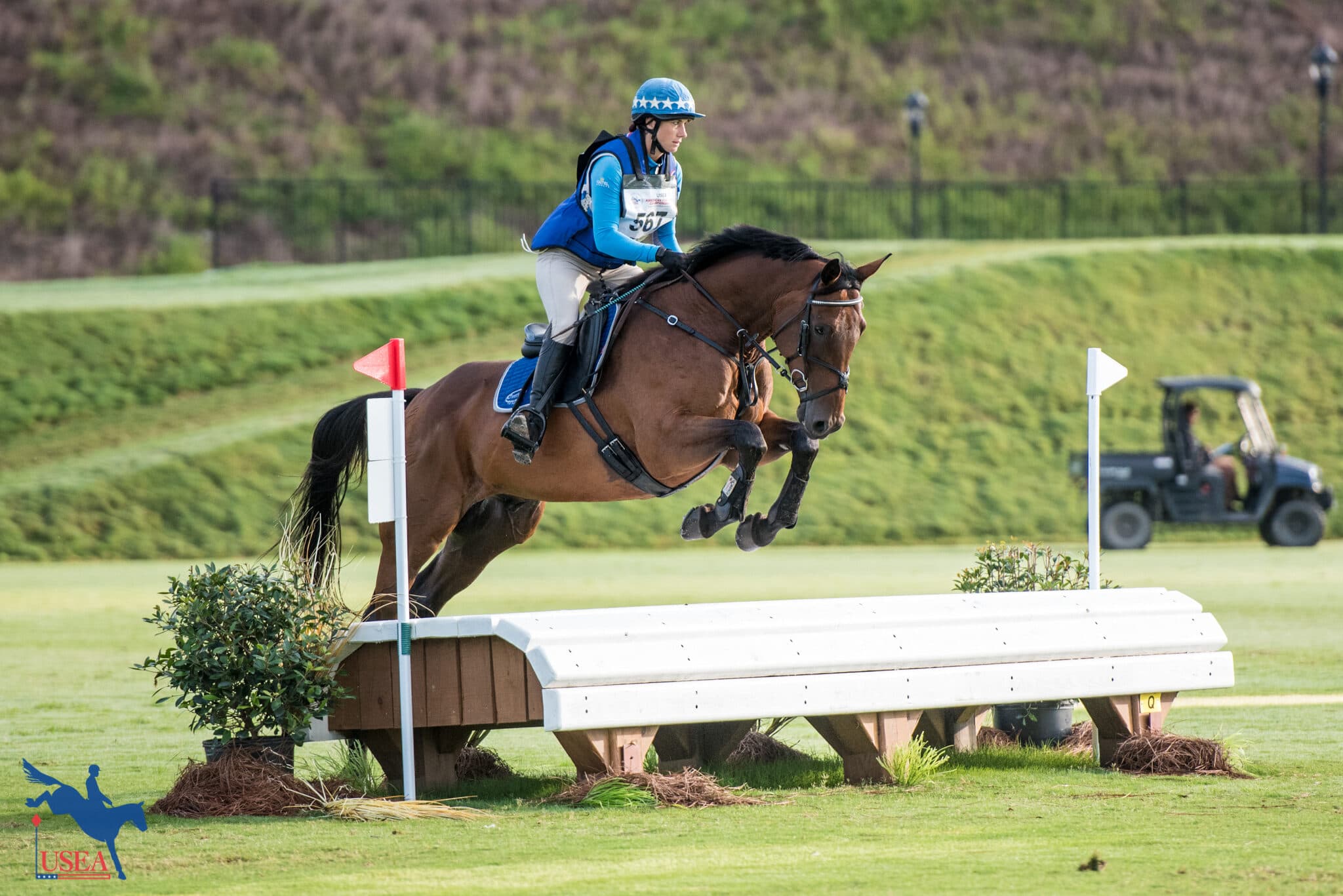 Stout commented that today’s ride was a huge improvement from the pair’s two most recent cross-country runs, so she’s pleased with her mount’s effort. “I felt like it went really well. We were a little looky at some fences, but we managed to get over them and push through it and he was very willing with everything. We were actually a little fast – we had a minute left at the third to last jump, so we ended up doing some circles and making it through with four minutes and thirty seconds. I’m super proud of him,” she explained. “My plan [for tomorrow] is to get through without knocking anything down. I’ve looked at the course, and it’s challenging, but not too bad,” she concluded.