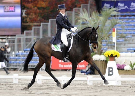 Karin Donckers (BEL), who only just missed an individual medal at the recent Alltech FEI World Equestrian Games™ in Kentucky, was the first of the field of 38 to score below 50, and about an hour later there were no surprises when Britain’s Ruth Edge equalled her score of 41.8 penalties.