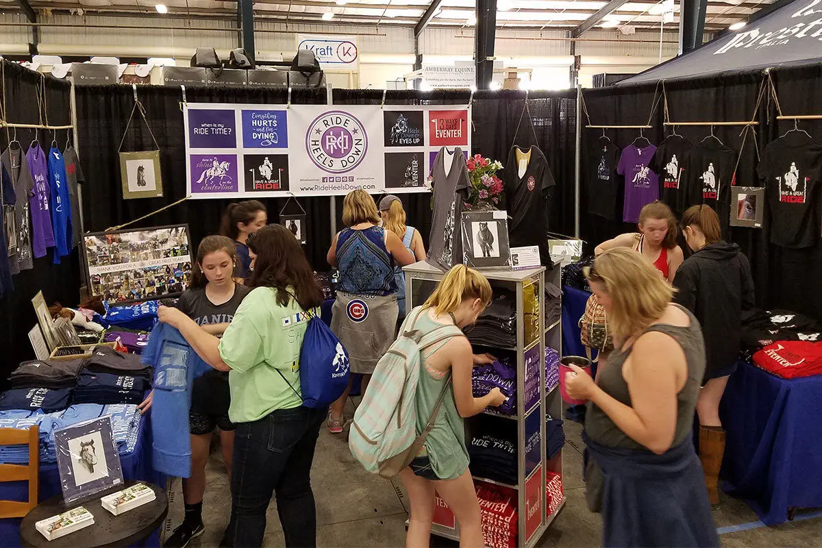 Her business was well-received by the local Georgia eventing community and Ainsley’s initial idea soon grew to include a full line of fun apparel with a unique eventing twist. She went from attending local events with a little pop-up tent to displaying at the Kentucky Three-Day Event for the first time in 2017. Now, Ride Heels Down offers tons of great t-shirts, sweatshirts, hats, jump marker flag earrings, an exclusive “Have A Great Ride” collection, and so much more.
