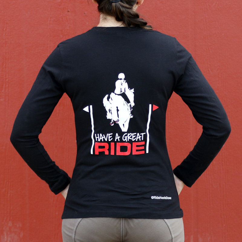 Ainsley’s Ride Heels Down eventing-focused apparel company was inspired by a quick reminder to herself to trust her horse and to put her “heels down and hold on” as she approached a fence that was a little larger than she was comfortable with in late September of 2014. Thinking that the mantra could make an interesting t-shirt, she finished the rest of the jump course and got to work planning out her new venture which was officially launched on September 1, 2015.
