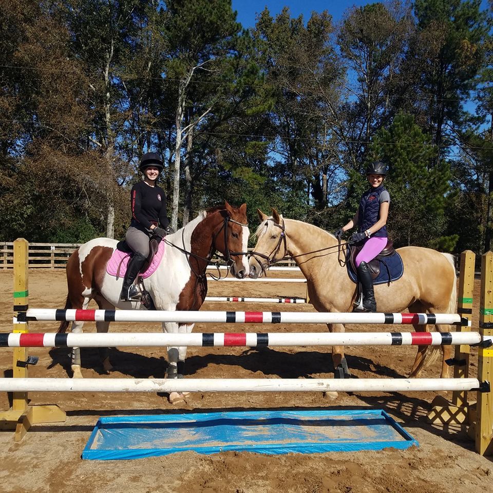 At the time, Mary had been riding with a coach, Miriam Offermanns, at a boarding barn north of Atlanta. Ainsley’s event horse, JJ, had been recovering from a pasture injury and, when she decided to move him to a new barn, she called Miriam – her friend of over a decade. Ainsley moved JJ to Miriam’s place, and once he was cleared for regular training again, Ainsley and Mary ended up riding in the same lesson group together.