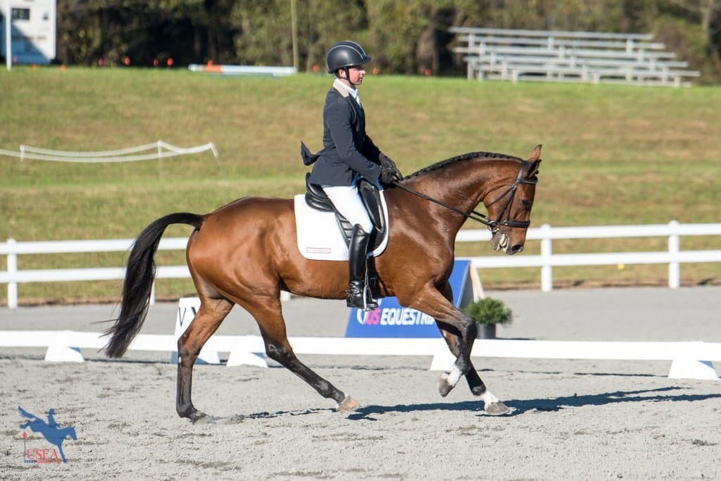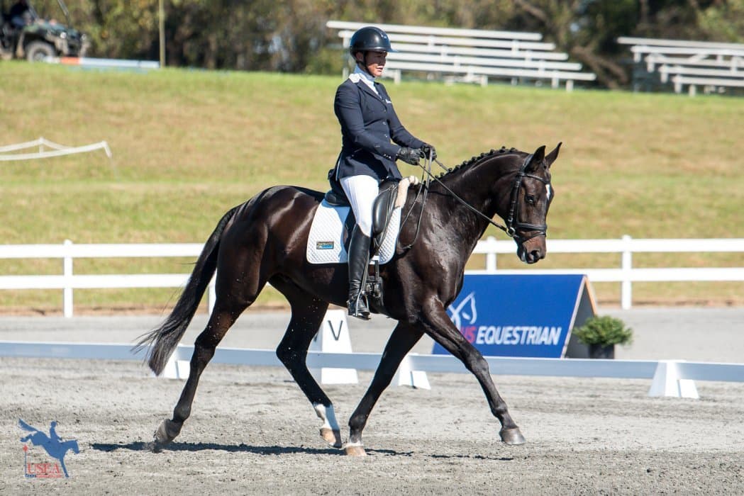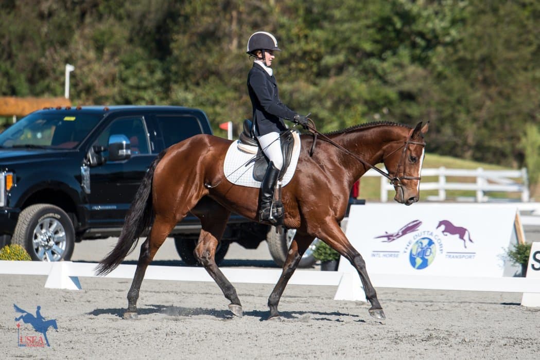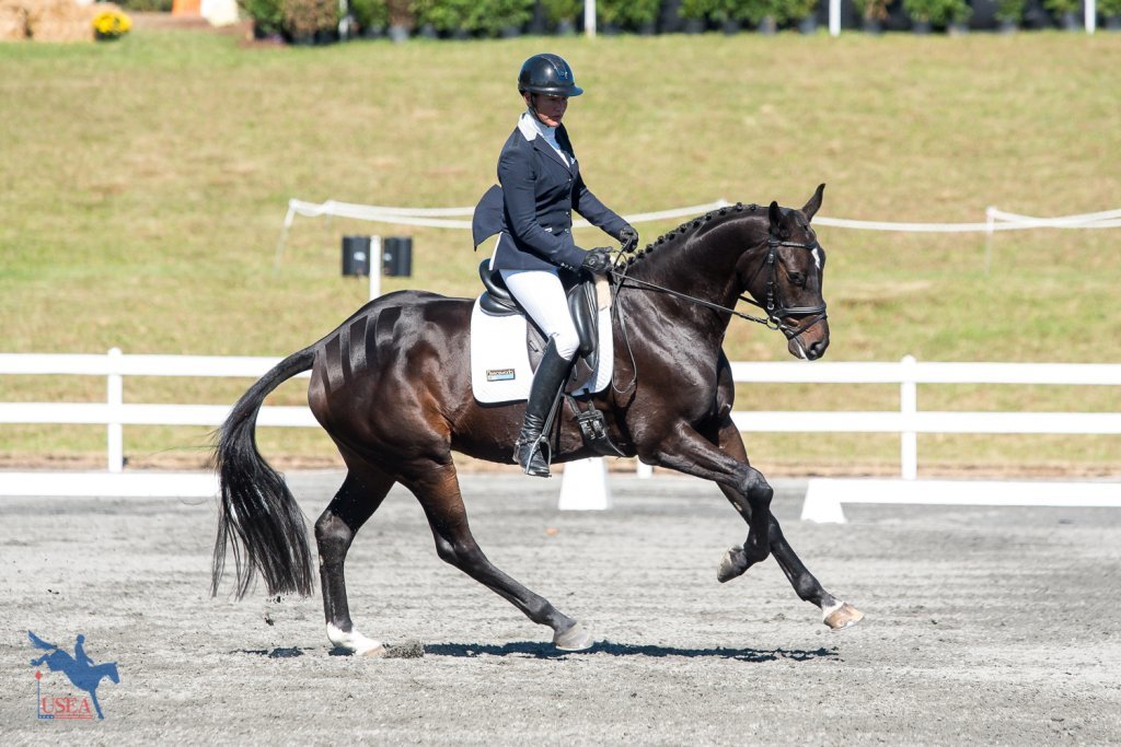 Like This (Do it x Ballerina II) and owner/rider Colleen Rutledge sit in second place heading into tomorrow’s jumping phase on a score of 23.56. Rutledge only acquired the Mecklenburg gelding at the end of August and was sourced from Global Event Horses in Ireland by John Michael Durr. “I got a phone call saying, ‘I need you to make a logical and adult decision,’ which is normally trouble,” Rutledge said with a laugh. “I bought him straight off of video having never sat on him.”
