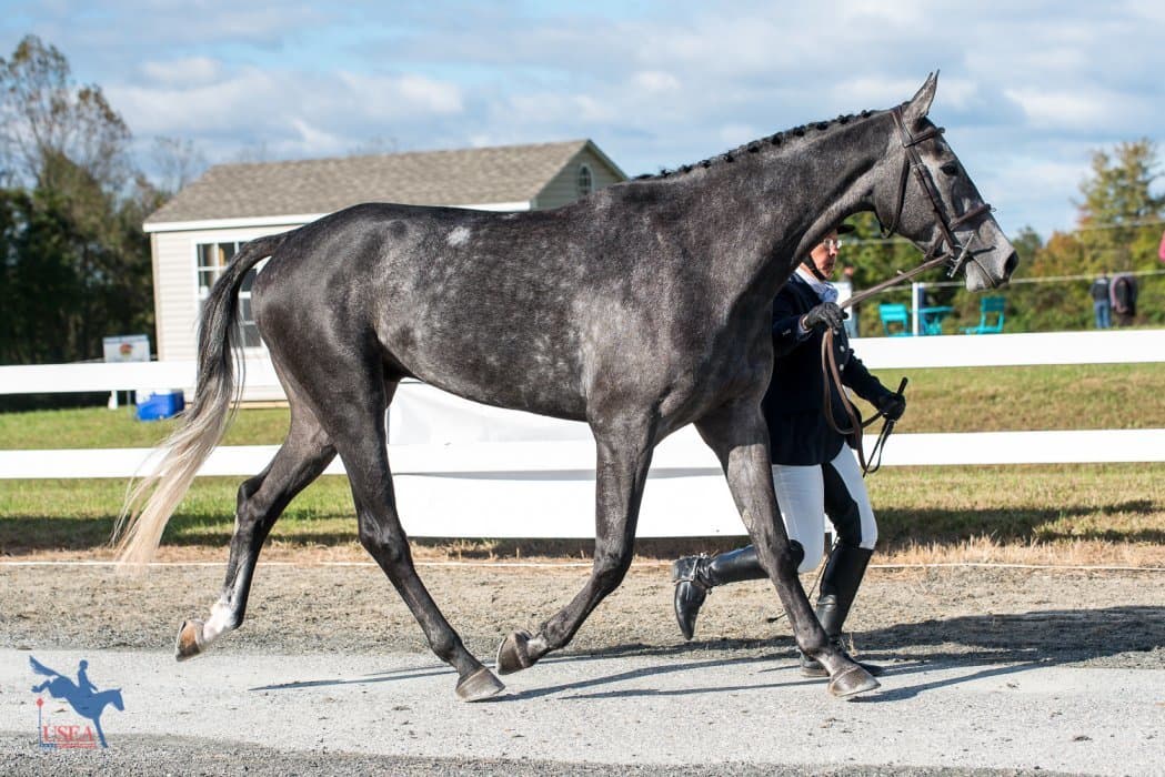 “We don’t know each other really well right now,” she continued, “so we’re still in this delightful negotiation phase of ‘I win and you don’t.’ But honestly, he fits into my barn fantastically, he is sweet as can be and has quite a personality . . . He truly is four [years old], he’s very gangly, he’s still a little unbalanced, but the raw basics are there and he’s only going to get better.”