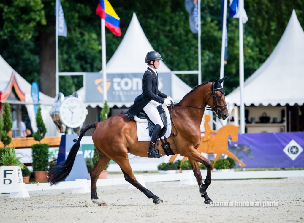 Vittoria Panizzon’s (ITA) Chequers Play the Game is competing in his first four-star this weekend, making Panizzon extremely proud how well he delivered throughout their test. “Only one of the flying changes didn’t quite turn out as planned, but the rest was brilliant. He has a fabulous walk, which earned us three nines from the judges – definitely something to be proud of!”