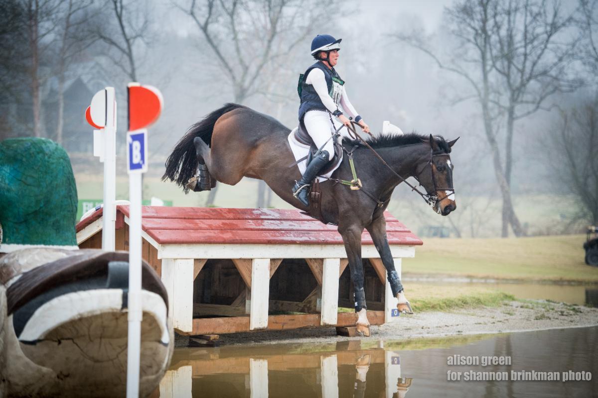 Jenny Caras and Trendy Fernhill carried their lead through to the finish in the CCI4*-S division, adding 20.80 penalties for time to their cross-country run and still keeping the lead score of 47.80. In second, Joe Meyer and Clip Clop, the 17-year-old Irish Sport Horse gelding (Crosstown Dancer x Wolverlife) owned by Madison Foote, Theresa Foote, and John Meyer, cleared the White Oak Course with 12.40 time penalties for a total score of 48.50. Rounding out the top three, Nobie Cannon and Bust A Groove, her own 16-year-old Thoroughbred gelding (Busterwaggley x Groovy), were by far the closest to making the time on a muddy course, adding only eight time penalties for a total score of 52.20.