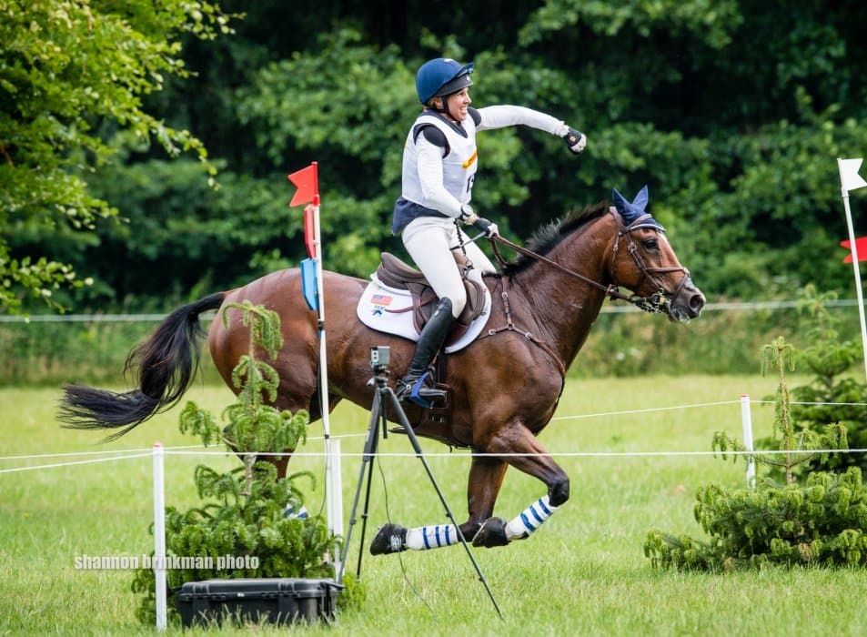 Liz Halliday-Sharp and Deniro Z (Zapatero VDL x Zonne-Trend), the Deniro Syndicate and Ocala Horse Properties' 10-year-old KWPN gelding, climbed from 17th place into eighth place after picking up just 5.2 time faults around the horse's first four-star cross-country track.