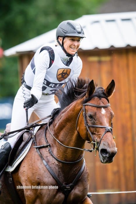 Jonelle Price, who was just three seconds over the time limit, climbed from sixth after dressage up into second place. “Cross-country is simply her thing. The mare absolutely loves it! She does tend to get a little strong but she was amazing today.”