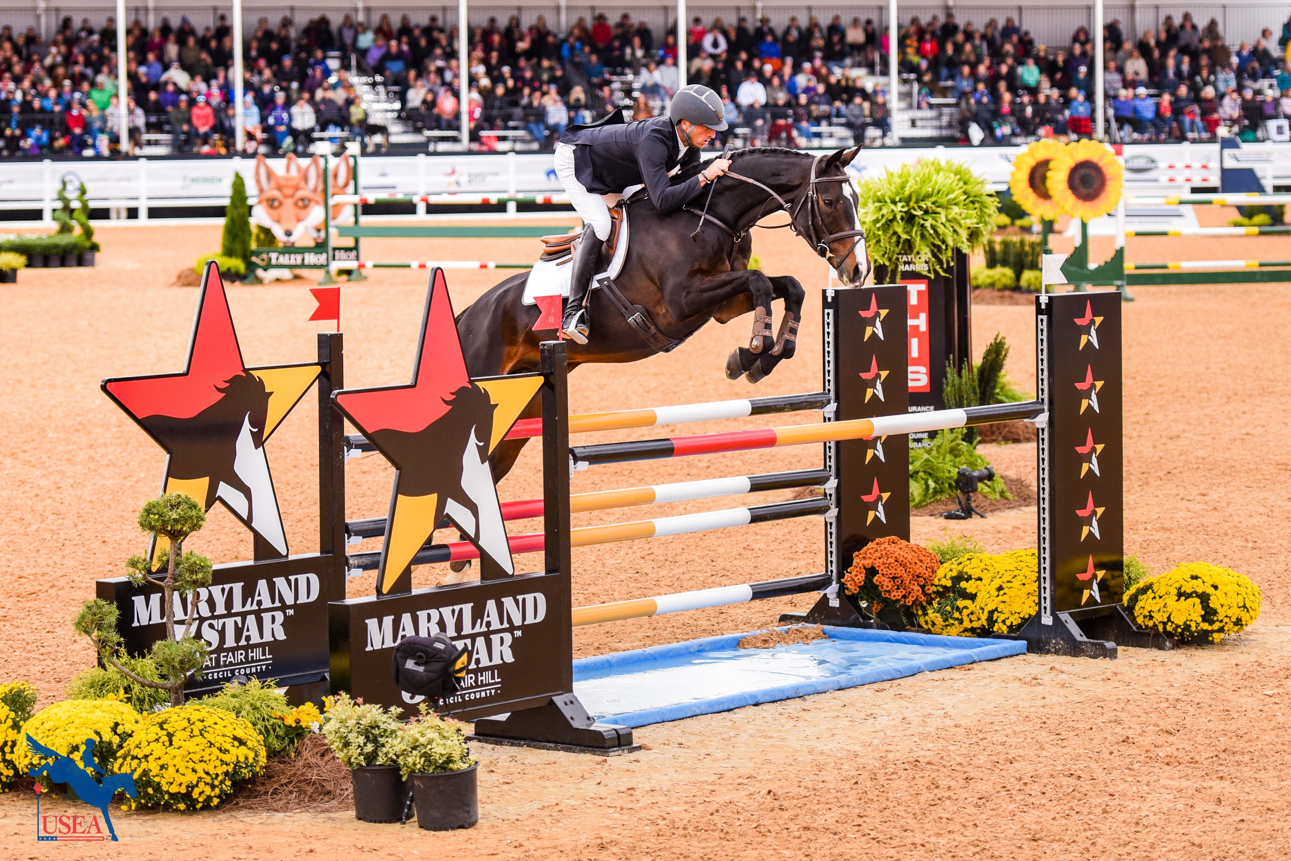 It all came down to overnight leader and Olympic Team Gold medalist Oliver Townend aboard Cooley Master Class (Ramiro B x The Swallow). Sitting on an overnight score of 21.1, Townend and Angela Hislop’s 16-year-old Irish Sport Horse gelding seemed to have a solid lead above his competitors and the stands were silent as Townend jumped the first three fences. But as the pole on fence four teetered and then hit the ground, a gasp could be heard in every corner of the stadium. The crowds erupted with murmurs as spectators came to the realization that Townend’s rail in show jumping had just launched Martin, who went into the final phase on a score of 25.0, up the leaderboard to the first-place position by just 0.1 points. Those murmurs turned to cheers when the announcers confirmed that Martin had just won the Maryland 5 Star. America finally had a victory on home turf and at a first-time event at that.