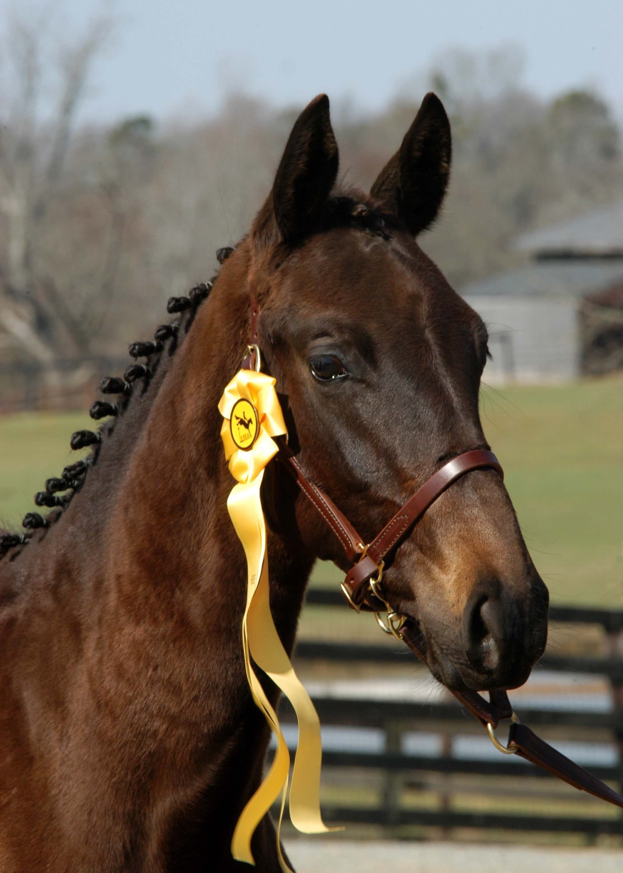 Kryptic, a yearling Trakehner colt registered with the American Trakehner Association, scored a 77 and placed 3rd in the USEA/EMCO Future Event Horse Yearling colt class at The Ark on February 29, 2008 (for complete results, click here). Kryptic was bred for eventing and is by the approved Trakehner stallion Fandango (by E.H. Sixtus) who himself is competing in dressage and eventing in California and out of the approved Preliminary Stud Book Anglo-Trakehner mare Karoline's Traum by Kartacz. When presented for his voluntary inspection in 2007, Kryptic received a 9/9/9 and was recommended as a stallion prospect by the American Trakehner Association. Kryptic is bred, owned and handled by Karri Henning of Altamont Sport Horses in Birmingham, AL who looks forward to showing him in additional FEH classes this year.