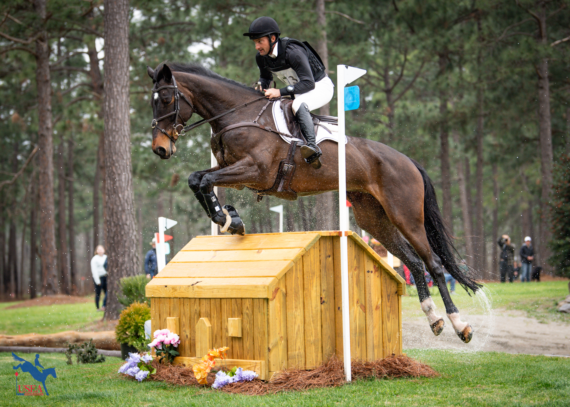 Brannigan, West Grove, Pennsylvania, is using Carolina as a prep run for either the Defender Kentucky Three-Day Event or Badminton (England) on “Foxy,” her veteran five-star horse. She jumped around Derek di Grazia’s debut cross-country course at the Carolina Horse Park clear with 10 time penalties to win on a score of 40.3 ahead of 32 other pairs.