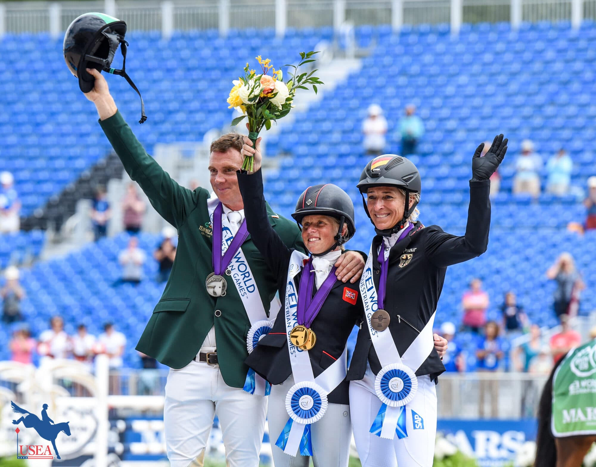 In a nail-biting finish at the 2018 FEI World Equestrian Games (WEG) at the Tryon International Equestrian Center (TIEC) in Mill Spring, North Carolina, Rosalind Canter (GBR) and Allstar B claimed the individual gold medal in the eventing world championship and solidified Team Great Britain’s spot at the top of the podium with a double-clear round over Alan Wade’s show jumping course. Ingrid Klimke (GER) and Horseware Hale Bob OLD entered the arena in individual gold medal position for Germany but tipped the back rail of the final fence, relinquishing the gold medal to the 32-year-old WEG first-timer from Great Britain.