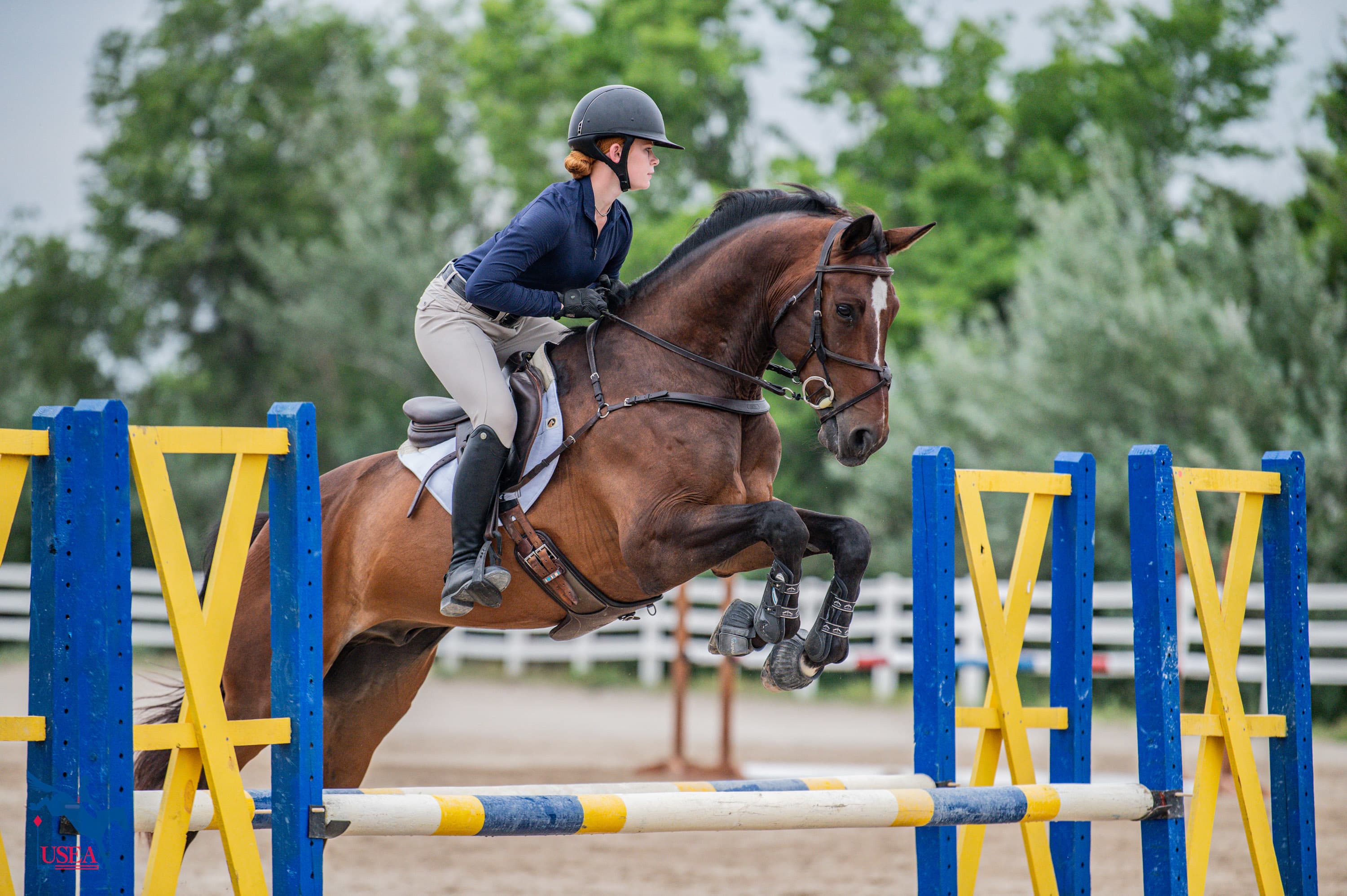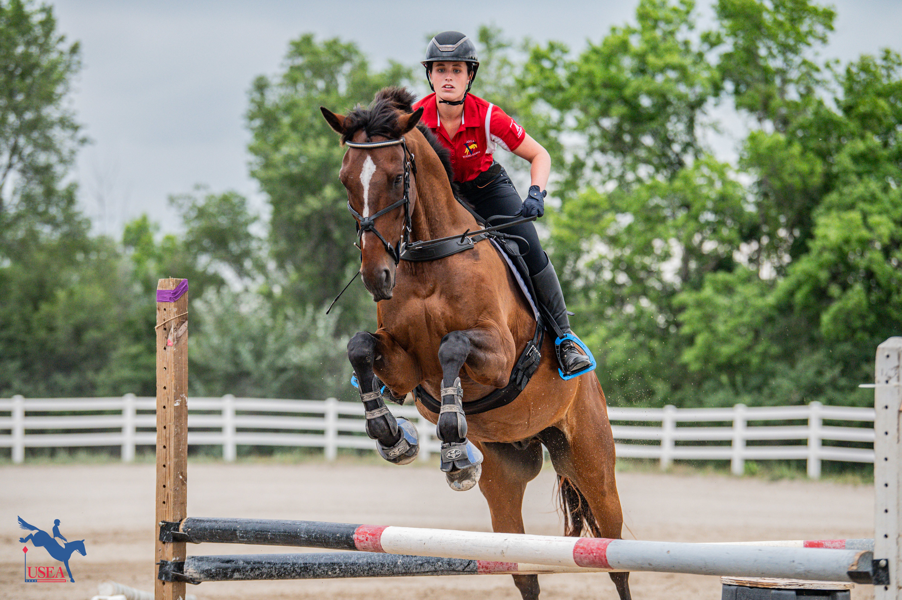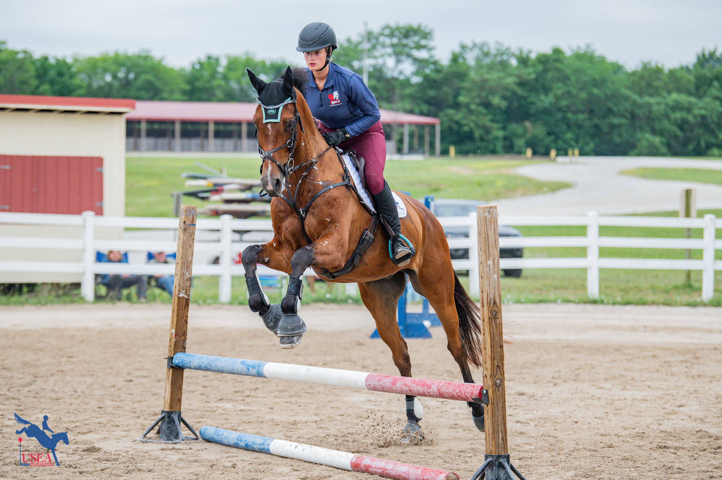 “I asked the clinic coordinator if she knew anyone who might have a horse I could use, but when that didn’t lead to anything I knew I wasn’t going to give up there!” said Peinado. She put a callout on Facebook hoping to connect with someone local to the area and was quickly connected with Mallory Stiver of Stilwell, Kansas, who generously allowed Peinado the use of her 14-year-old Thoroughbred gelding Hugo Boss (Artax x Goodie Good Girl), or “Huey.”