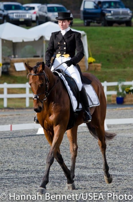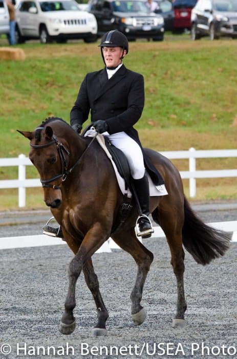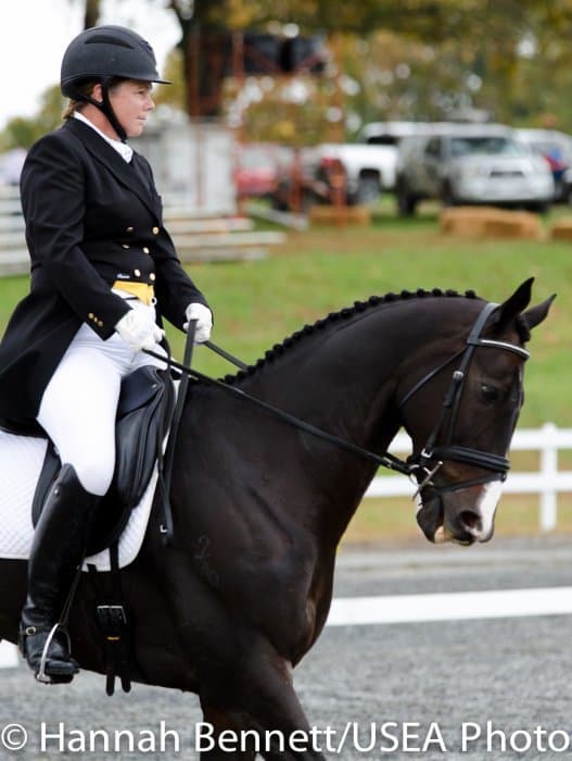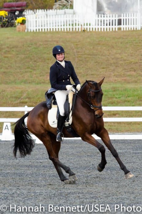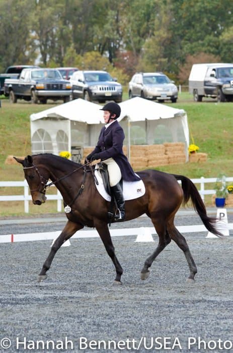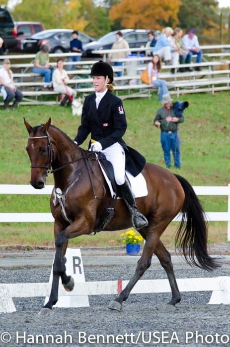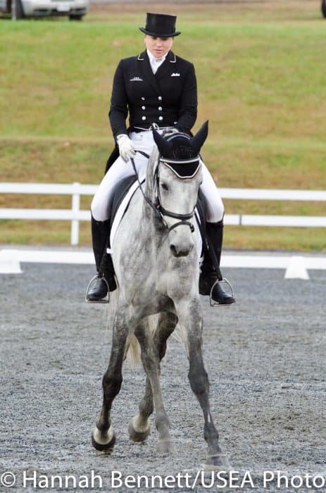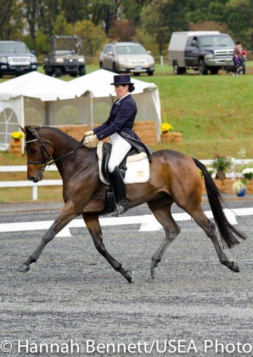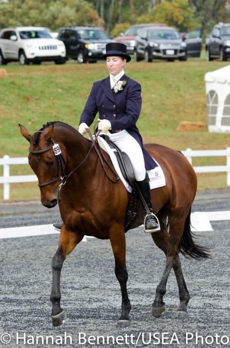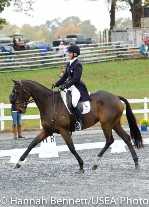 Sneaking into the third place position is Heather Gillette and her own Our Questionnaire, a 16-year-old New Zealand Thoroughbred gelding, who were able to score a 48.6. Gillette attributes their lovely dressage test to several random injuries in a row that caused them to focus solely on flatwork. “We had some freak injuries that just set us back. That’s why our flat work’s gotten so good, all we’ve been doing is flatwork for a really, really long time.”