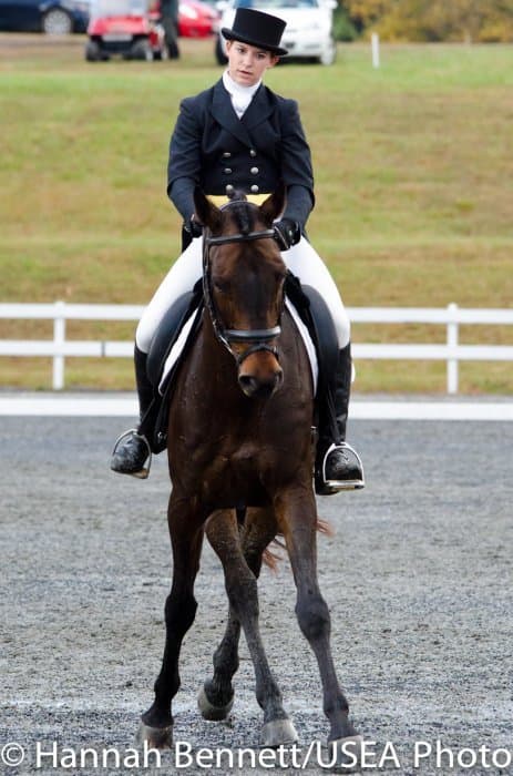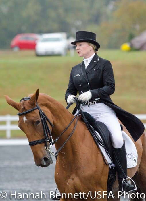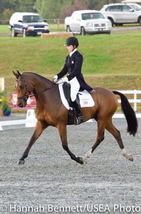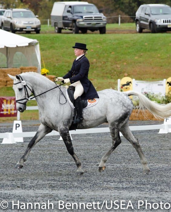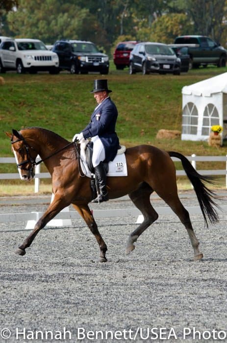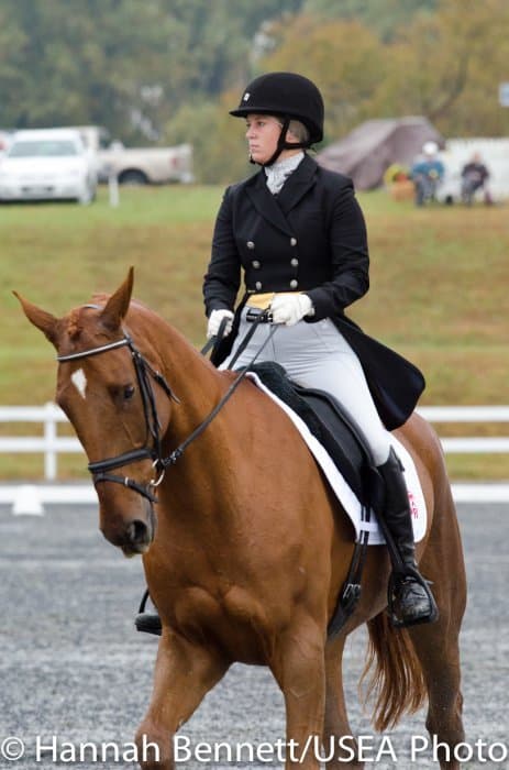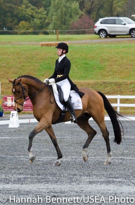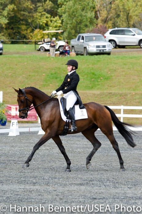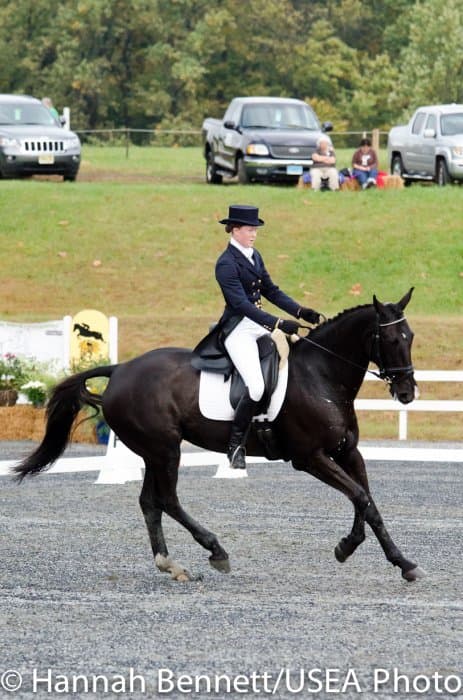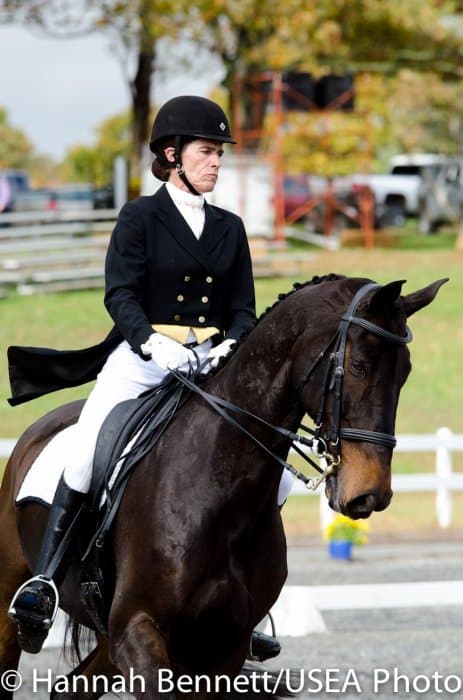 Sneaking into the third place position is Heather Gillette and her own Our Questionnaire, a 16-year-old New Zealand Thoroughbred gelding, who were able to score a 48.6. Gillette attributes their lovely dressage test to several random injuries in a row that caused them to focus solely on flatwork. “We had some freak injuries that just set us back. That’s why our flat work’s gotten so good, all we’ve been doing is flatwork for a really, really long time.”