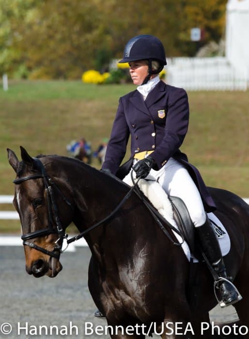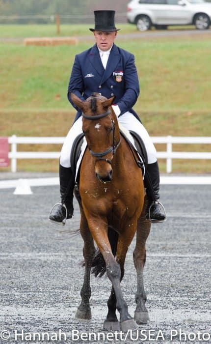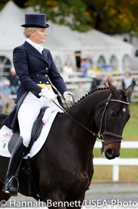 Today, the rest of the competitors in the CCI2* were able to strut their stuff in front of the judges, causing placings to shift throughout the leaderboard. However, the overnight leader, Susan Beebee, was able to cling on to the first place position with her own Wolf, a 9-year-old bay Dutch Warmblood gelding. “I’m relieved to still be here, it’s fabulous,” she said.