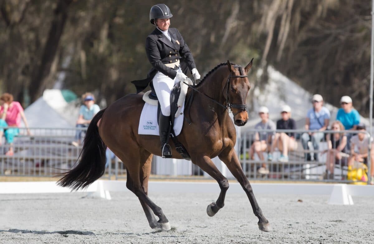 Jennifer Brannigan, who took the lunchtime lead, finished in third place aboard Candace Kircher and Tim and Nina Gardner’s Catalina. The 13-year-old Oldenburg mare sits on a 44.4 going into the jumping phases. “I was pretty excited,” stated Brannigan when reflecting on her placing after Dressage. “I wasn’t exactly expecting to be sitting here, but I think in this company to have such a green horse step up to the plate is really exciting.”