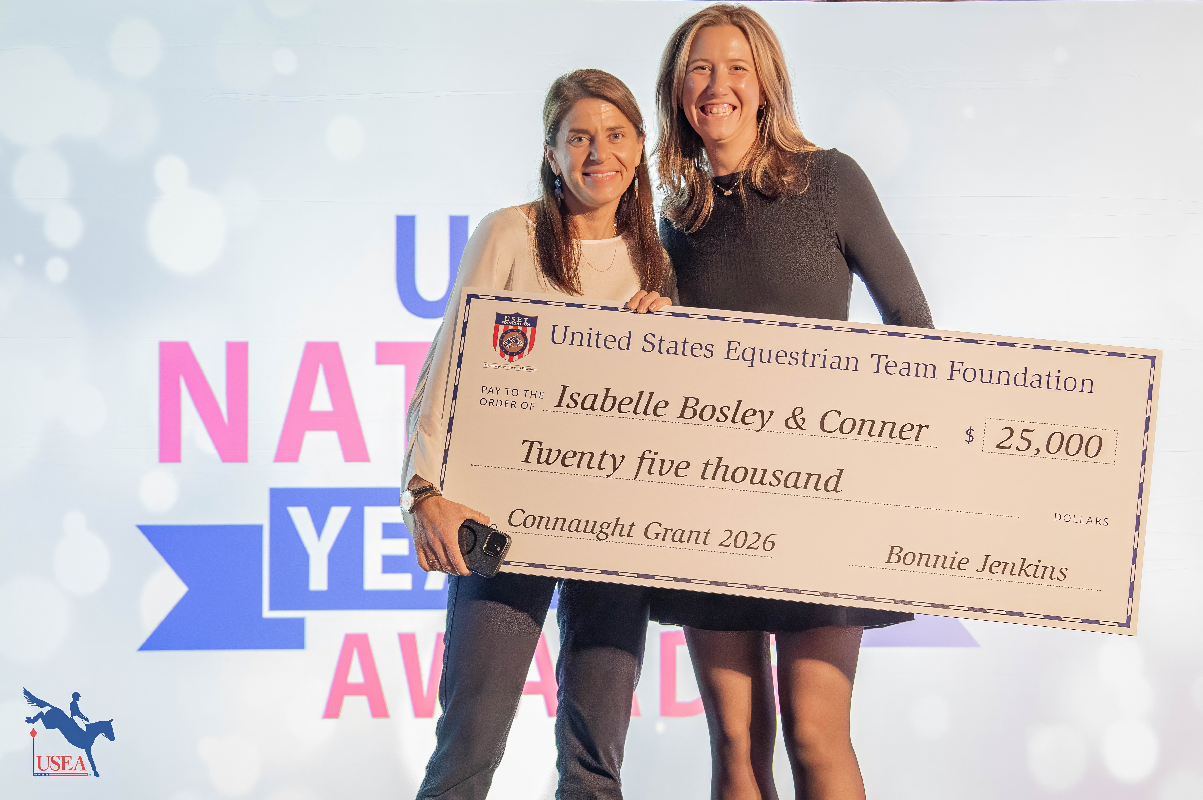 The grant is designed for a horse competing at the CCI2* or CCI3* level who shows potential to one day be on the U.S. team and is presented in memory of Bruce Duchossois. The USET Foundation awarded the 2025 Connaught Grant to Isabelle Bosley and Conner.