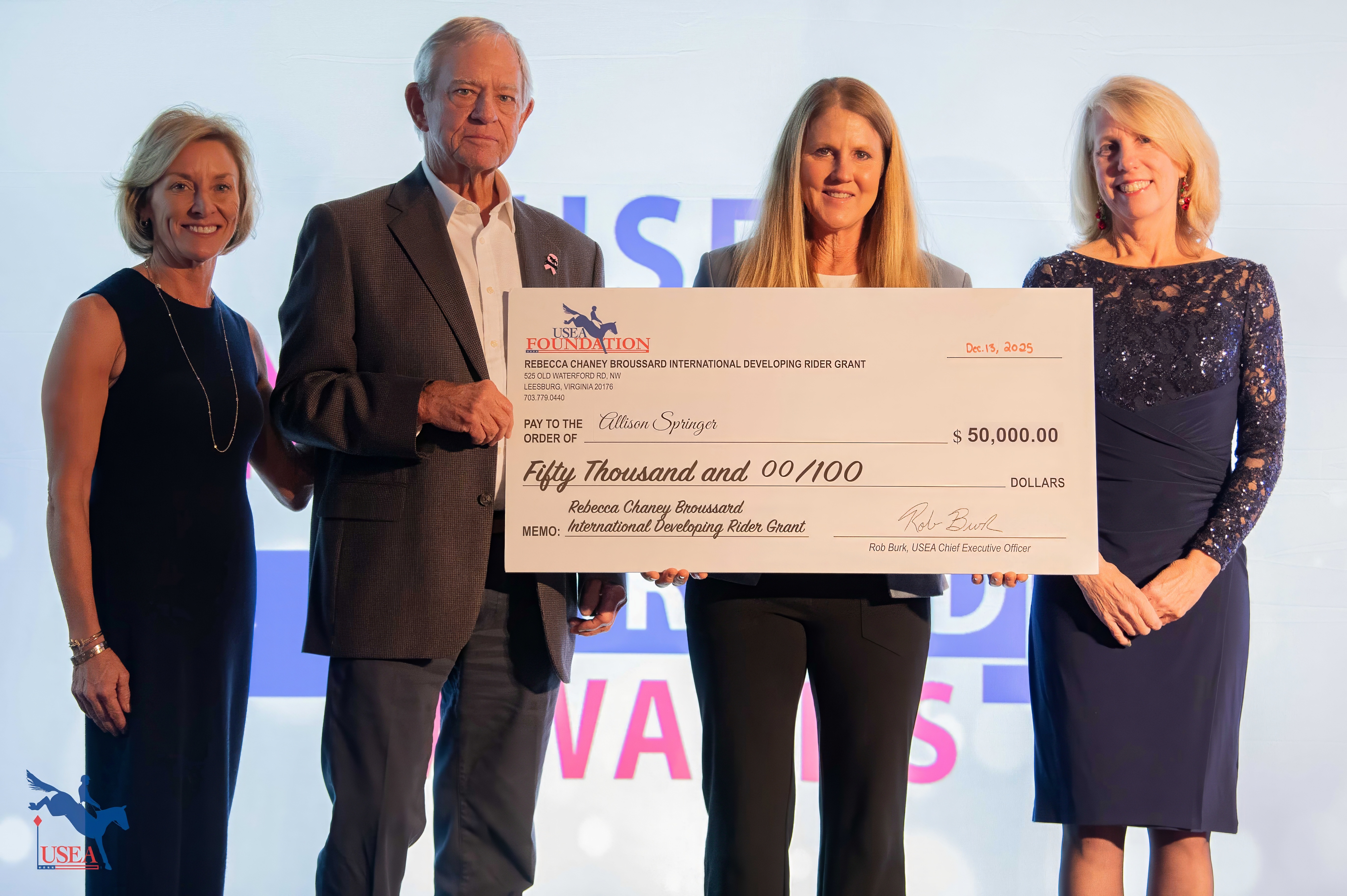 The Rebecca Broussard International Developing Rider Grant awards $50,000 for the educational development of an international quality rider based on competition in eventing on the global stage. The recipient of the grant is based on performance record, interview, and involvement with the eventing community.