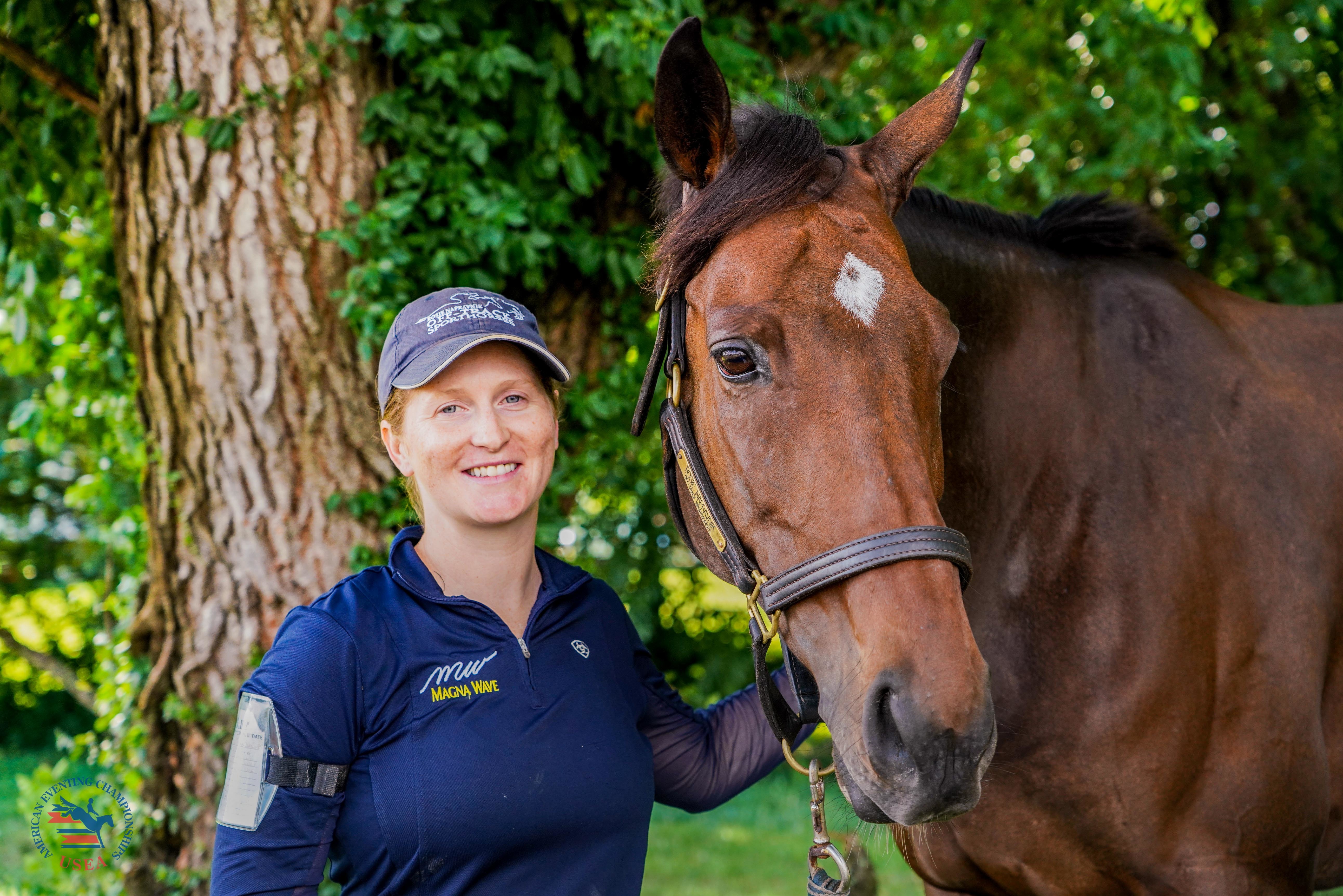 Shortly after ending her racing career, she committed to the idea that she would return to eventing after giving birth. That vision came to life with the purchase of a horse she had won several races on in her previous career. She followed the mount closely and bought him in a claims race and then produced the older mount up to the raining level despite his laundry list of physical ailments.