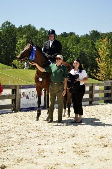 Eventers seem to support the Merit Award and appreciate the helpful advice that they receive on their score sheets after their cross country run. Terry Lockhart of Bristow, Virginia and her horse, Just Floor It, are among the supportive winners. Lockhart had never heard of the award before the Virginia Horse Trials. She was shocked and tickled to be the winner.