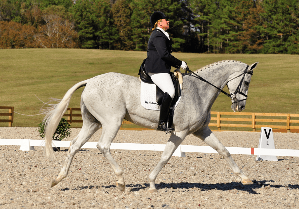 I cruised down the shady Chattahoochee Hills driveway early. Pausing next to the stabling chart I noticed a young couple tossing tennis balls to two Shetland Pony-sized Great Danes. Only three divisions were competing in dressage on Friday, and many people would be arriving later in the afternoon while one arena took its time getting through the day’s schedule. At this quiet hour on a crisp fall morning, one would hardly know there was a show at all. I knew a pleasant, peaceful day of dressage was ahead.