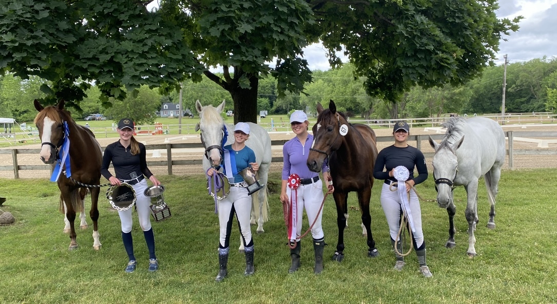 Five teams competed in the IEL at the Cobblestone Farm Horse Trials in Chelsea, Michigan, from June 8-9. Slater Boos (Sozo), Maura O’Connor (Will You Be Mine), Katie Schutte (Rigden), and Hannah Willford (DHI Kloosterboy) made up the winning team, Washtenaw T.E.A.M, and earned a final score of 96.1.