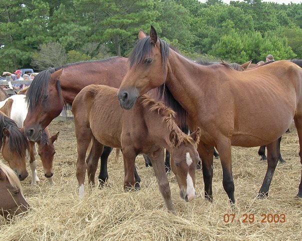 Amanda Baker and her family were familiar with the Pony Penning, having purchased a Chincoteague pony the previous year. “Hershey was not my first Chincoteague pony and we were not even planning to buy a pony that summer in 2003. We had merely gone to enjoy our yearly vacation on the beautiful island of Chincoteague. When we saw that year’s crop of foals however, Hershey immediately stood out to us. Not only was he a rather flashy pony, even amongst all the pintos and Misty-look-alikes, but his sire and dam were two of the tallest ponies on the island,” Baker explained. Hershey is by Ocean Star and by Periwinkle, both Chincoteague ponies. Many of these ponies are indeed less than 14 hands, so the opportunity to have an island pony that was more size appropriate for riding was impossible to turn down. “I turned to my dad, who gave in surprisingly quickly. I still don’t know what he was thinking, but I am extremely grateful for him allowing us the opportunity,” Baker joked. With her father’s permission and a keen eye set on Hershey, Baker prepared for the auction.