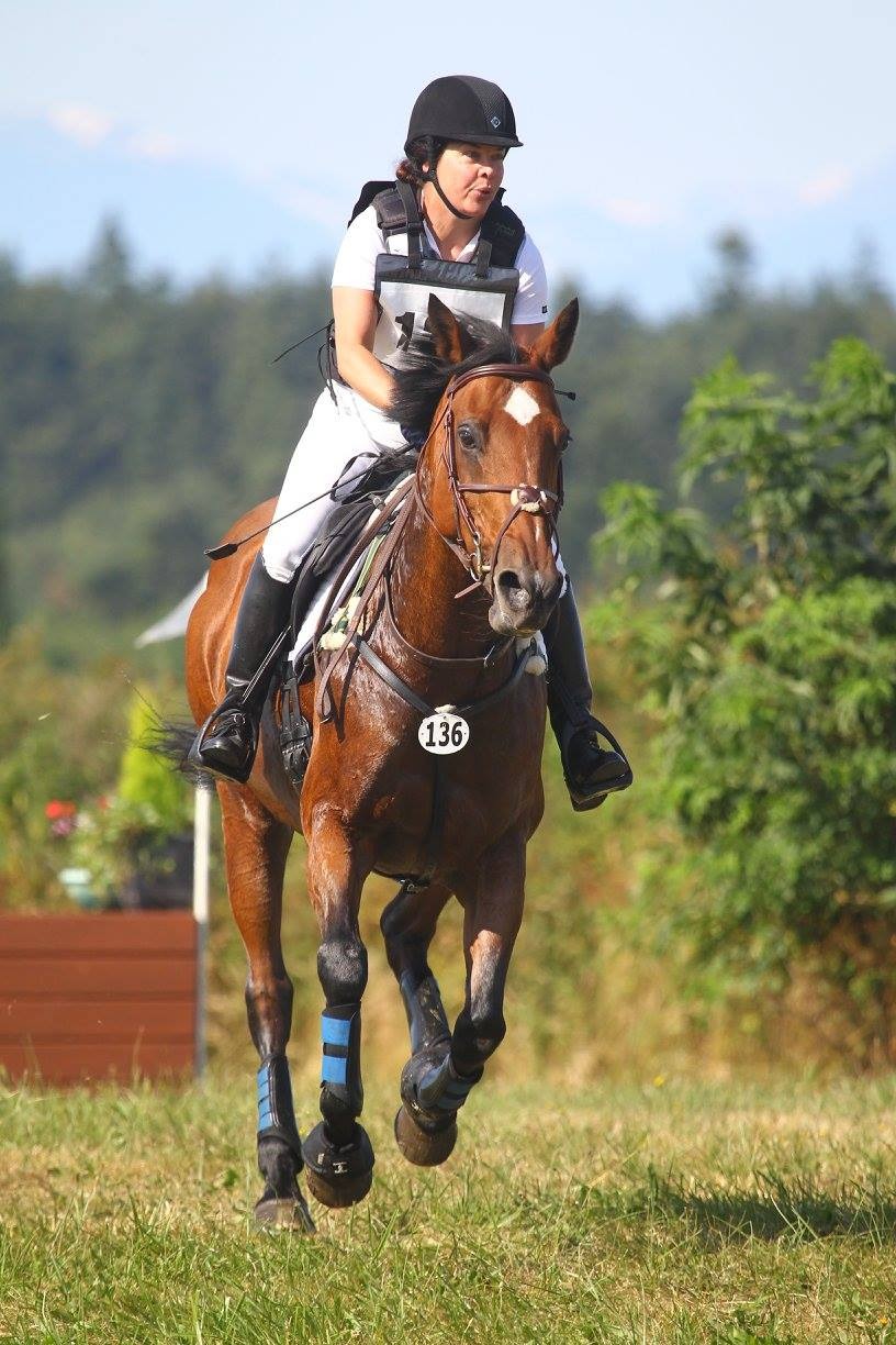 Carrell has been competing in eventing off and on since 1988. She tries to compete in five or six events each year and volunteers at every event in which she competes. She said, “I make exceptions for volunteering at Aspen and Equestrians Institute - meaning I go and volunteer at them even when I don’t compete. Rick got into eventing when I wanted him to know what I enjoyed so we went to the Whidbey Island Horse Trials. He loved the horses running fast and jumping into the water. From that experience he decided I needed a different horse so bought me a new horse. He since has learned to ride and been super involved with helping me get ready for each stage of the competition and been there to watch. Recently he has put more hours into volunteering since I get nervous and pick at how he gets my horse ready.“