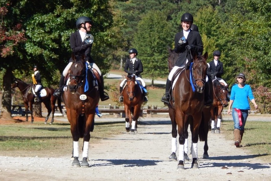October was a big show month for us. We were able to send two full teams to the Chattahoochee Horse Trials Intercollegiate Team Challenge. The Clemson Tigers team was in the lead starting Saturday and held onto it for the entire weekend, allowing them to win the challenge. The Clemson Orange team had great rides as well which allowed them to finish fourth in the challenge! We were also very proud of our new members for their individual achievements at Chattahooche Hills. Kelly Waters received the gold medal win for having the lowest individual score of all the intercollegiate riders and Emily Thomas took home the bronze medal score for dressage.
