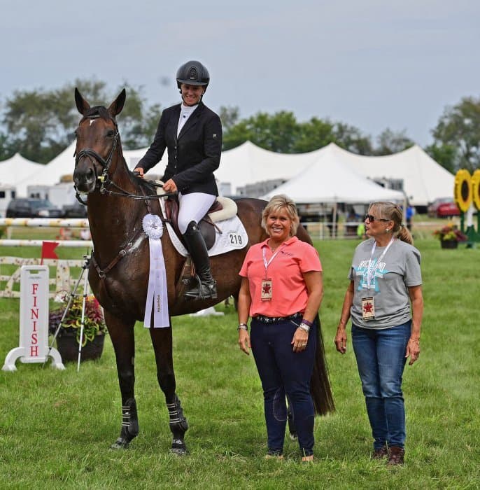 Dorr won $500, a Tiffany bracelet, a leather halter, a horse brass and stock tie in Philippa’s colors for being the highest-placed female rider in the Advanced division. She said that she had never met Philippa Humphreys who the Advanced division is now named for. “I did not know her, but I had followed her [career] and read articles about her. She was a bright face in the eventing world and her family [who were in attendance at Richland and were part of the award presentation] is beautiful,” said Dorr.