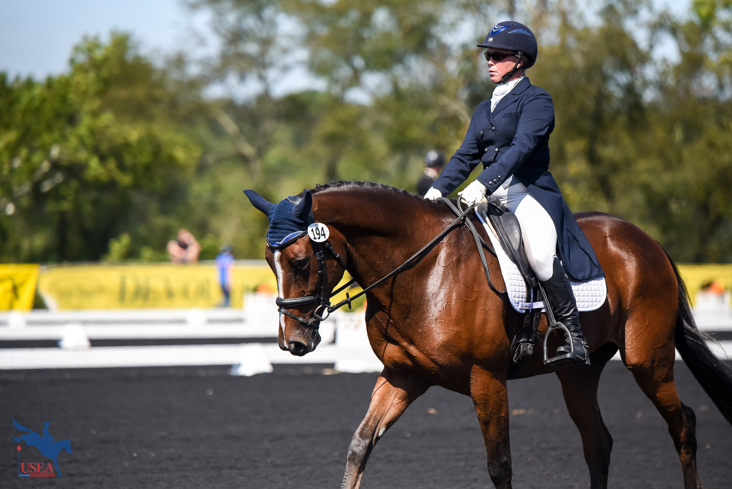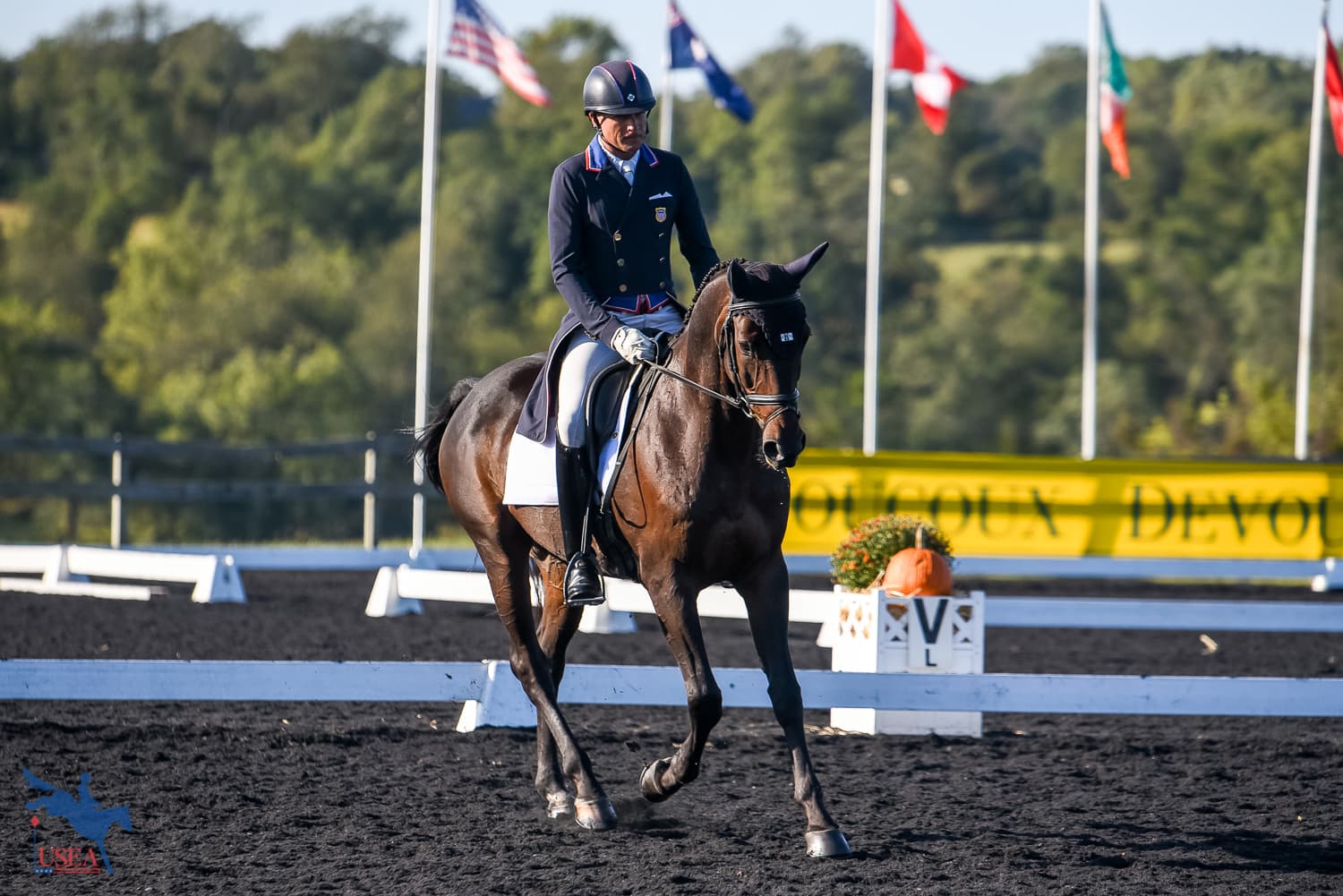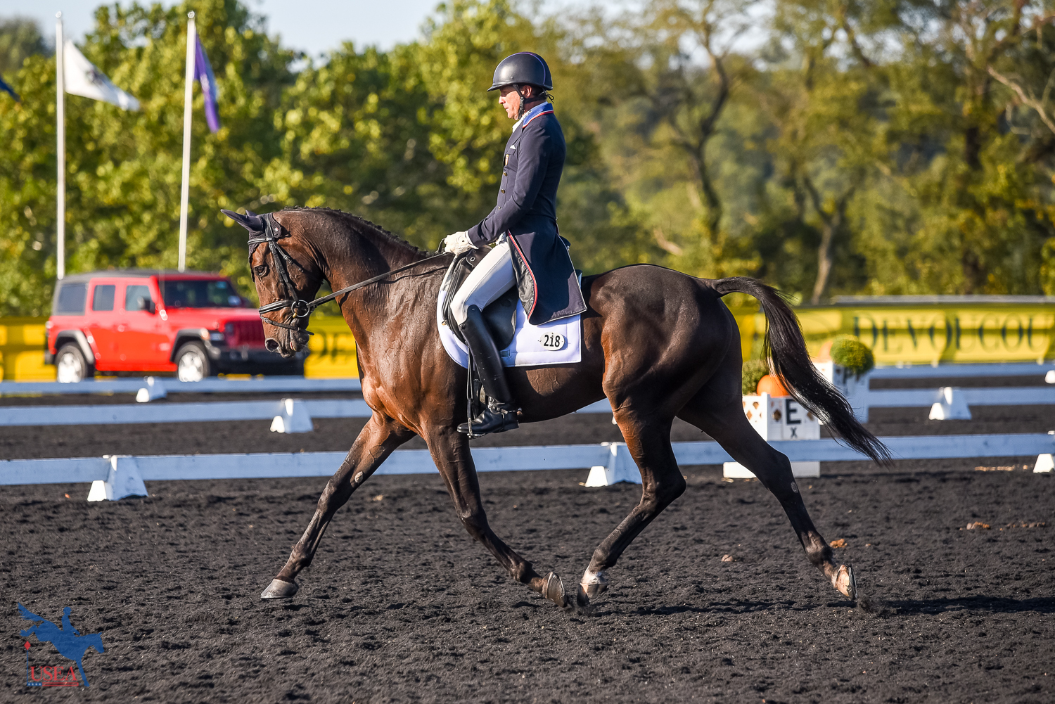 “Usually I try to keep him quiet and relaxed and keep all the work good going up to the event,” Sylvester explained. “He’s been really lazy the last few weeks because it’s hot and dry – he’s not a fan of this kind of weather – and so I honestly tuned him up a little bit and made him work really hard. He can be quiet in the warmup and then light up in the ring, which is what he did at Great Meadow, worse than I’ve ever felt him do, and so I really overrode the warmup and he got upset a few times but then he was exactly the same horse when I got him in the ring, which I’ve never quite had from him. He usually gets some degree of tense when he goes down centerline and today he was being kind of wild in the warmup and he got tired from that. He still had a little bit of tension but it seemed like he worked out a lot of stuff in the warmup and was more focused in the ring.”