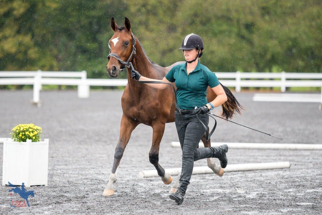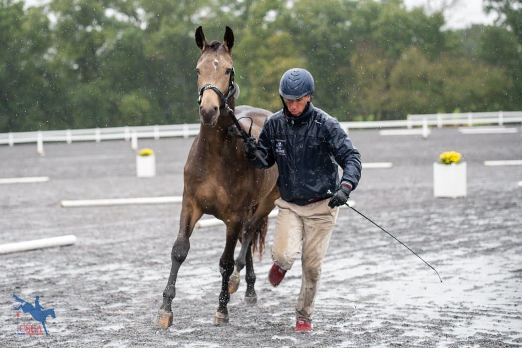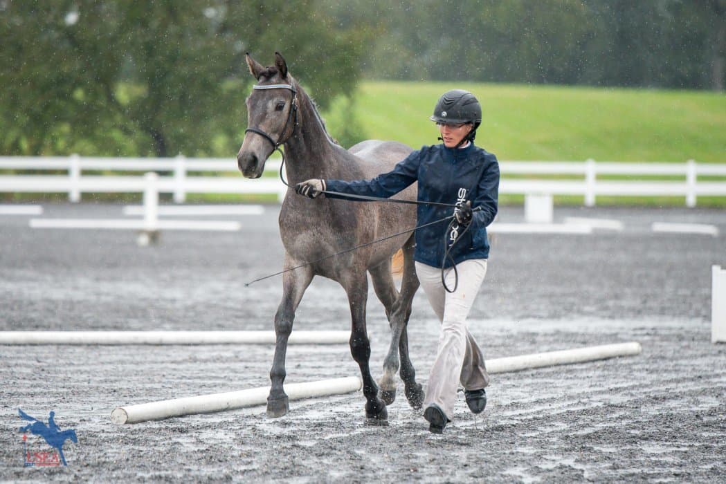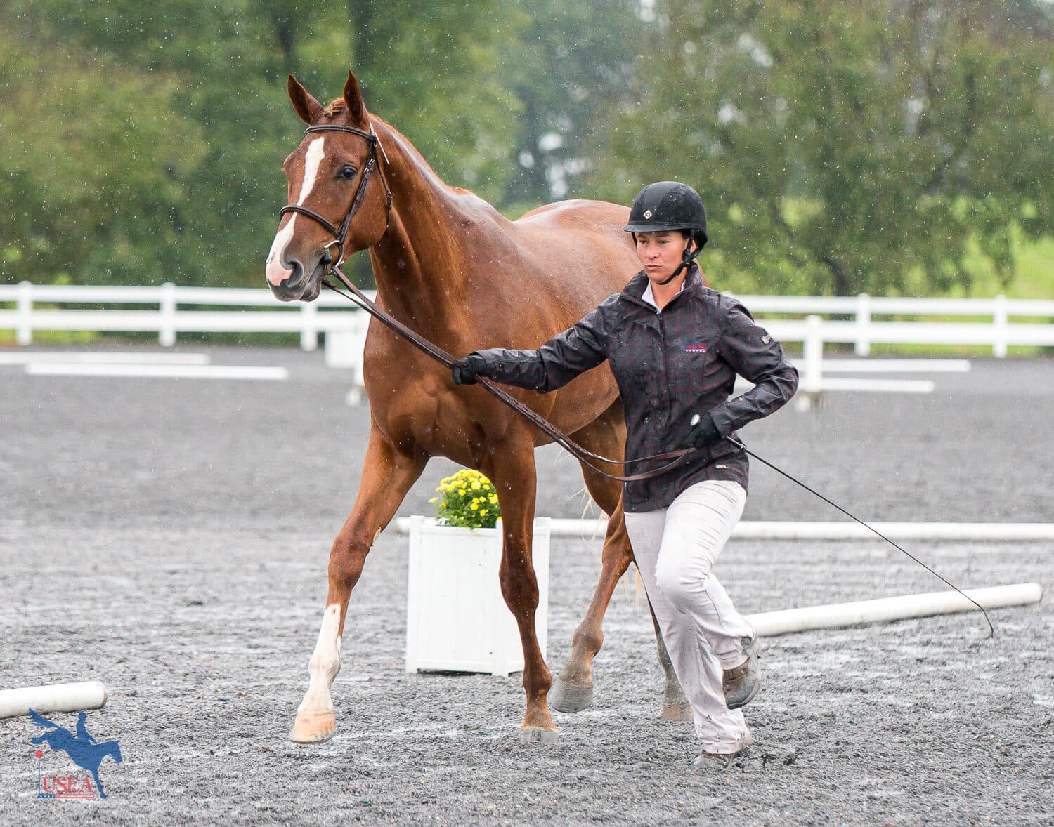 The rainfall at Loch Moy Farm in Adamstown, Md. couldn’t dampen the spirits of the 14 2-year-olds, 12 yearlings, and their handlers who came to compete at the second and final day of the USEA Future Event Horse (FEH) East Coast Championships. Judges Robin Walker and Peter Gray judged a total of 50 young horses aging from yearlings to 4-year-olds over the course of the two-day competition.
