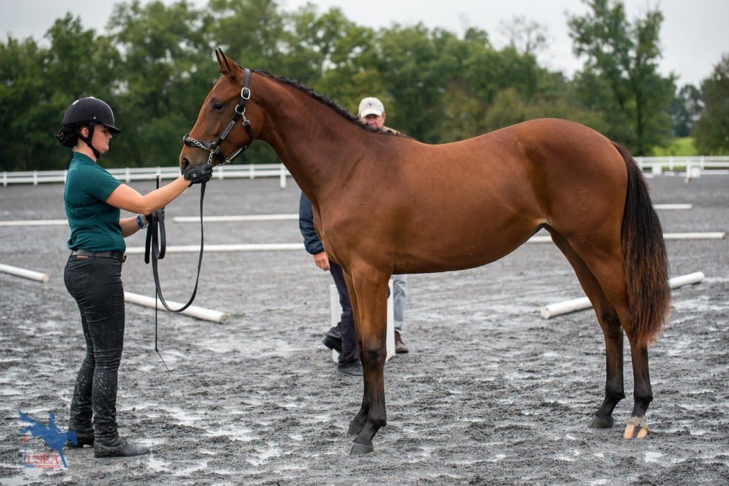 The 2-year-old colt division started things off this morning with seven entries to see, followed by seven 2-year-old fillies. The highest scoring 2-year-old colt, Denis Glaccum’s Selle Francais/Thoroughbred gelding Jaguar My (Jaguar Mail x Katlyn Lil), was named the Overall 2-Year-Old Champion on the East Coast on a final score of 85.98, more than five points ahead of the 2-Year-Old Colt Reserve Champion, Anita Antenucci’s Thoroughbred cross gelding Arden Casino (Valentino x Count Your Pennies), who finished on a score of 80.1.