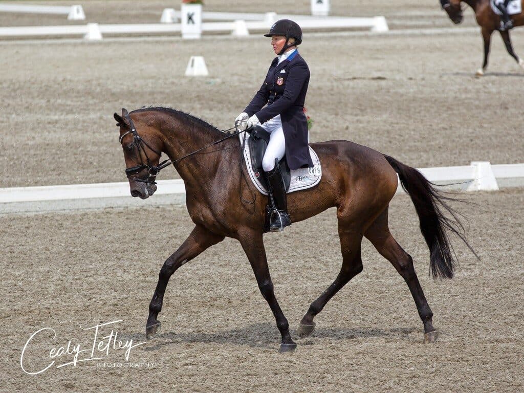 Marilyn Little (USA), who is here as part of the final U.S. Team Mandatory Outing ahead of the FEI World Equestrian Games in Tryon, North Carolina next month, had a fabulous test on RF Scandalous (Carry Gold x Richardia), the 13-year-old Oldenburg mare owned by Jacqueline Mars with Phoebe and Michael Manders.