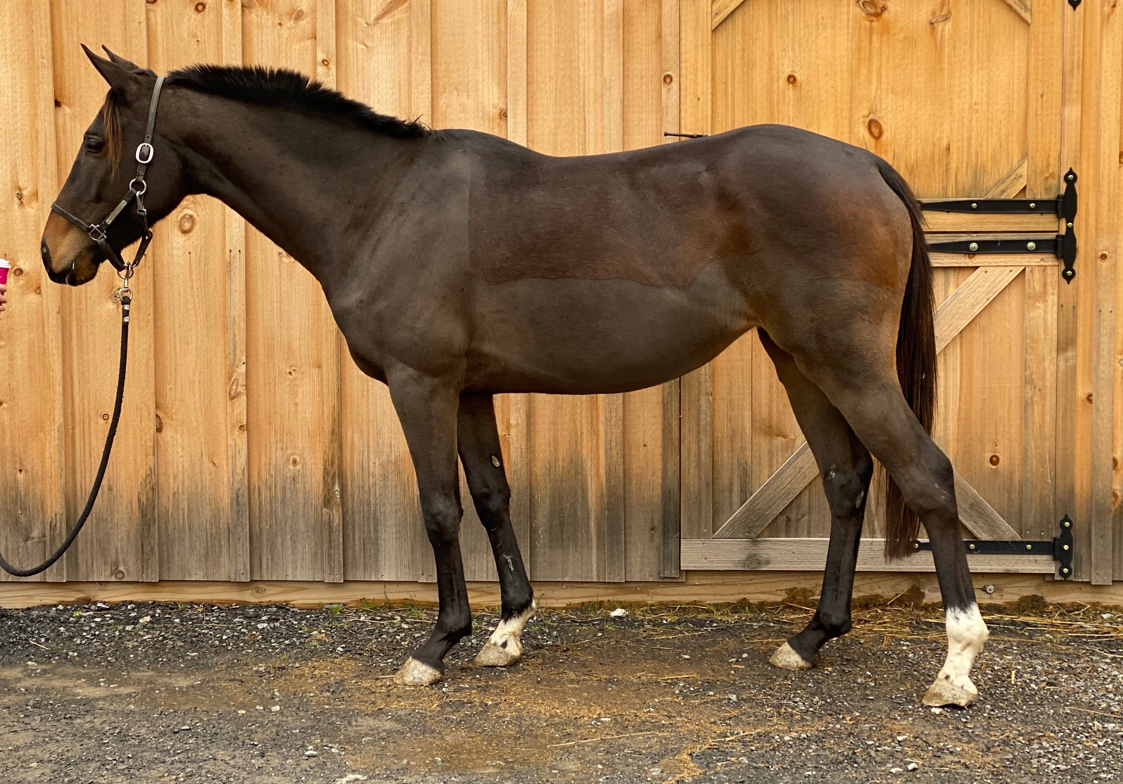 This 3-year-old Thoroughbred filly is TC Maleficent, aka “Molly,” by Brush Away and out of Raf’s Golden Girl. Molly is owned and bred by Kaitlin Schultz of Thunder Crest Performance Horses in Saugerties, New York.