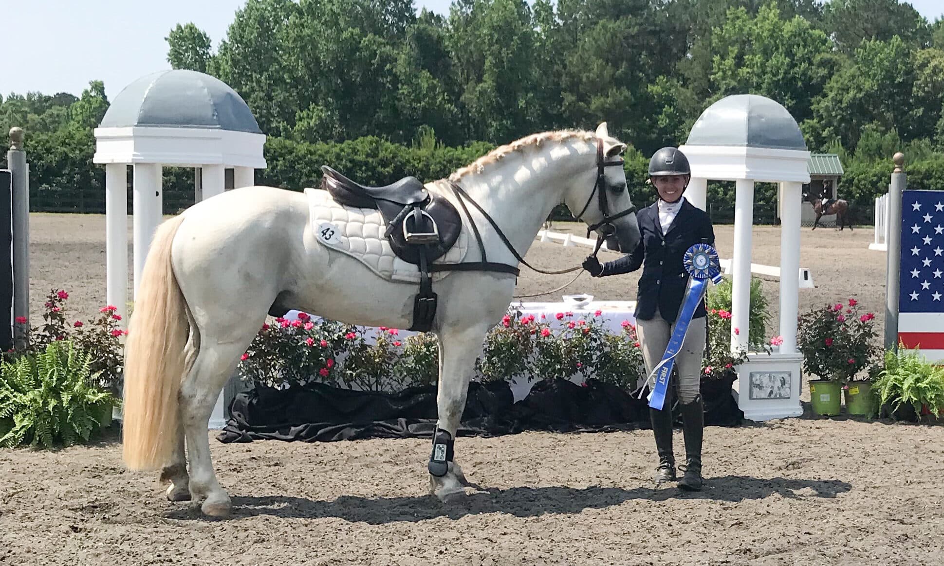 Poppyfield’s Tiger Shark, a 17-year-old half-bred Connemara gelding by Seven Hill’s Grey Ghost and out of a Thoroughbred mare, competed in the Junior Novice Rider Championship Division. He was bred in the USA by Kim Gates, and was ridden by Marissa Griffin. He finished fourth on his dressage score of 32.6